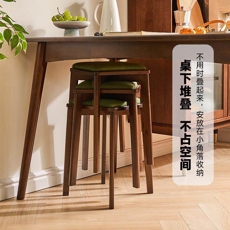 📚 实木凳子餐凳家用椅子板凳可叠放圆凳软包凳伴读凳梳妆凳简约方凳