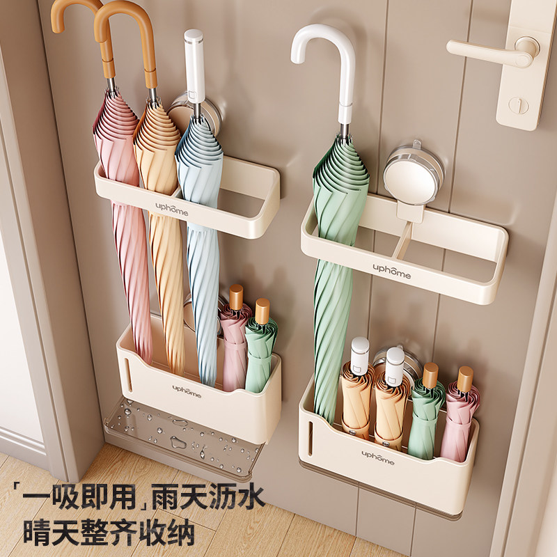 📚 吸盘长短柄雨伞收纳架入户防盗门后家用壁挂神器放折叠伞具置物架