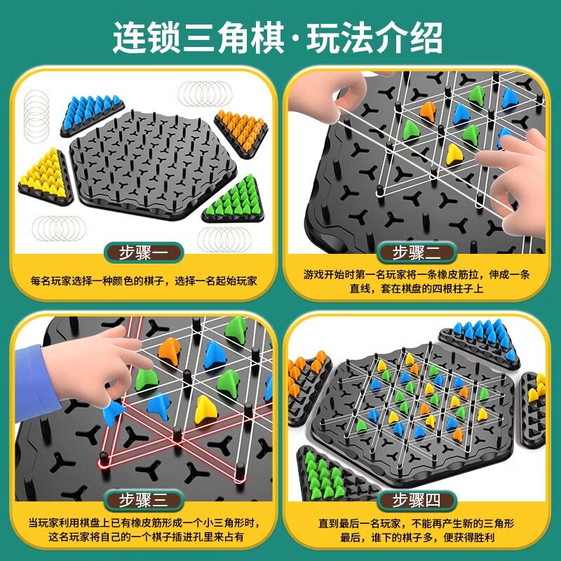📚 儿童连锁三角棋亲子互动皮筋旗桌面游戏思维训练双人棋类益智玩具