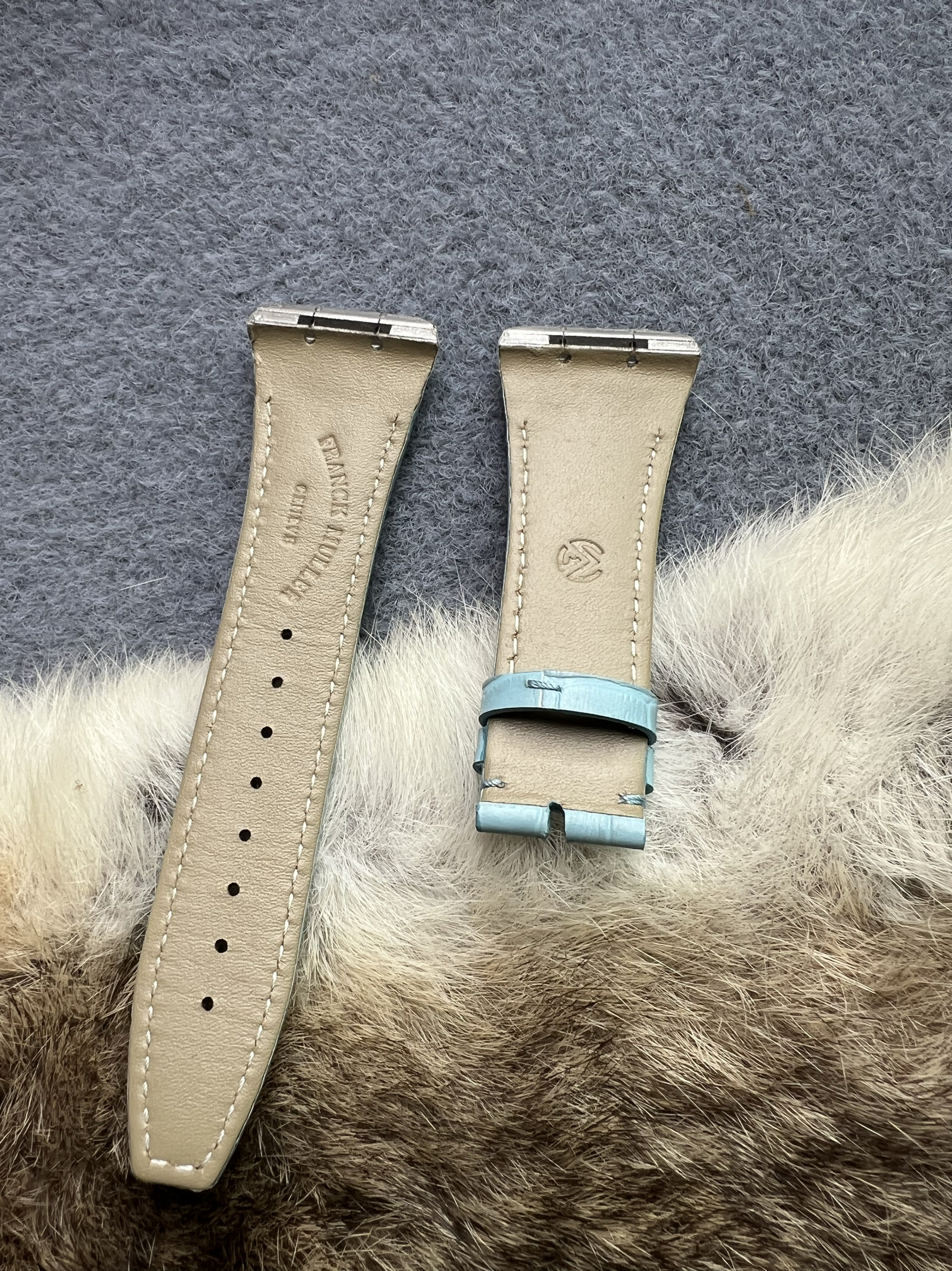📚 法兰克穆勒蓝色表带 V45游艇蓝色皮手表链男28FM法穆兰表带金属头
