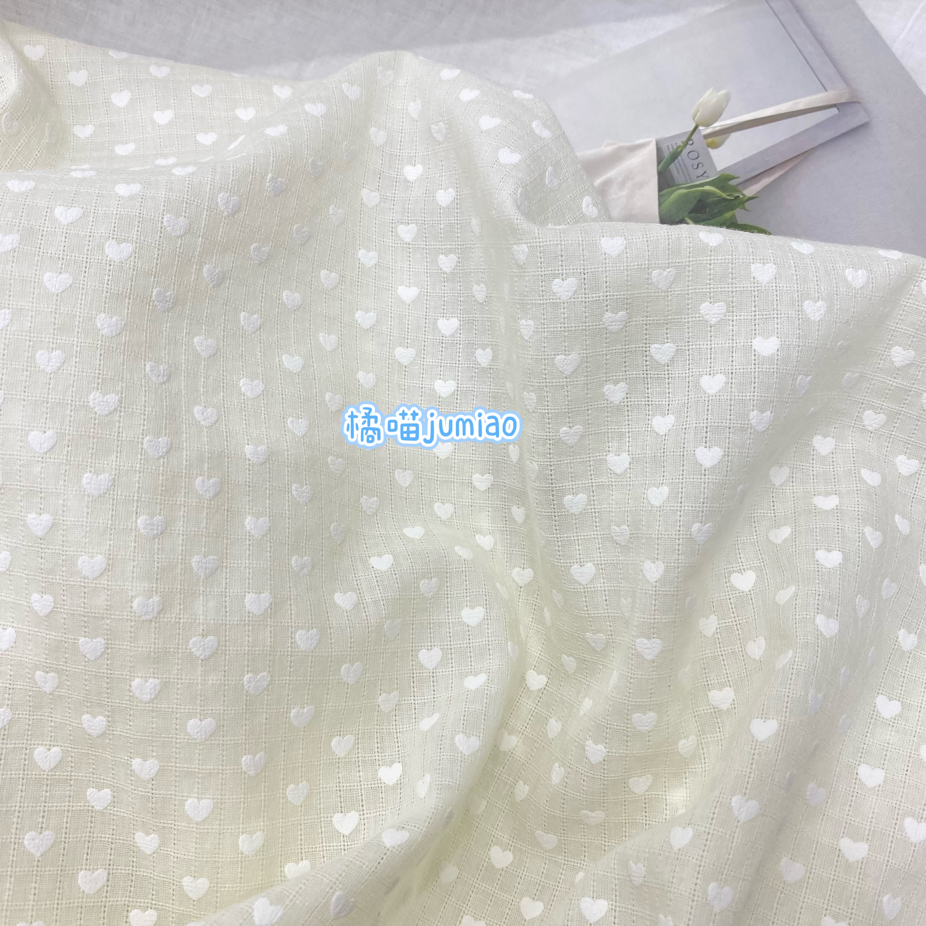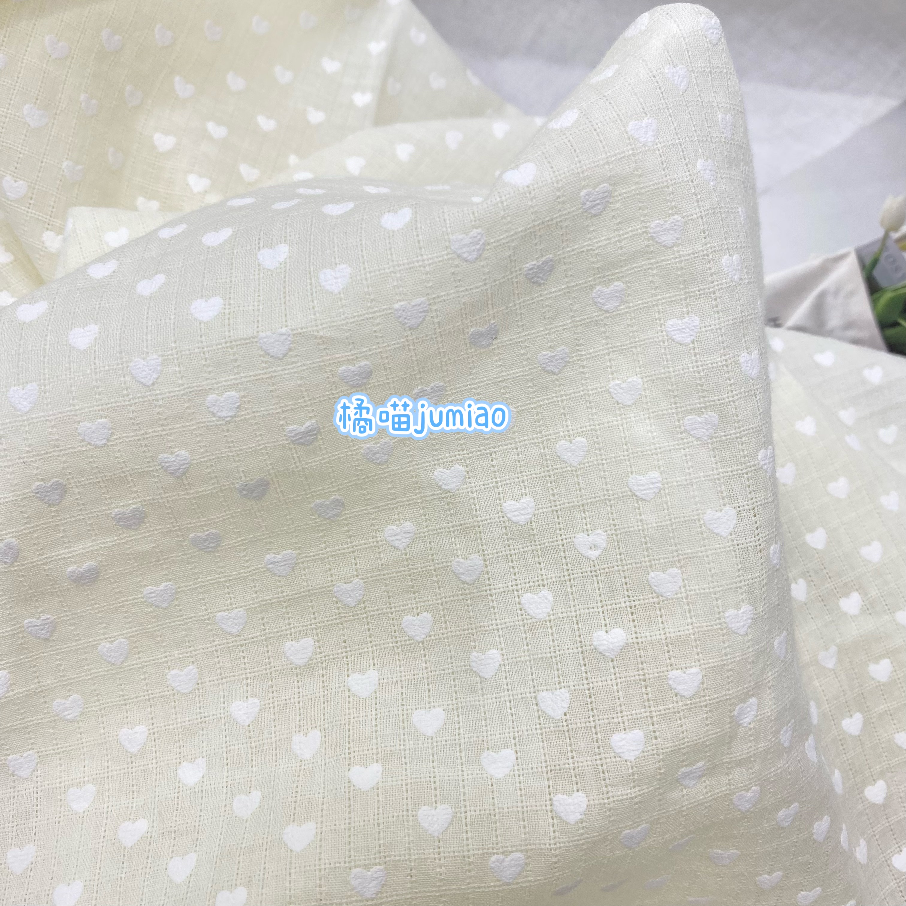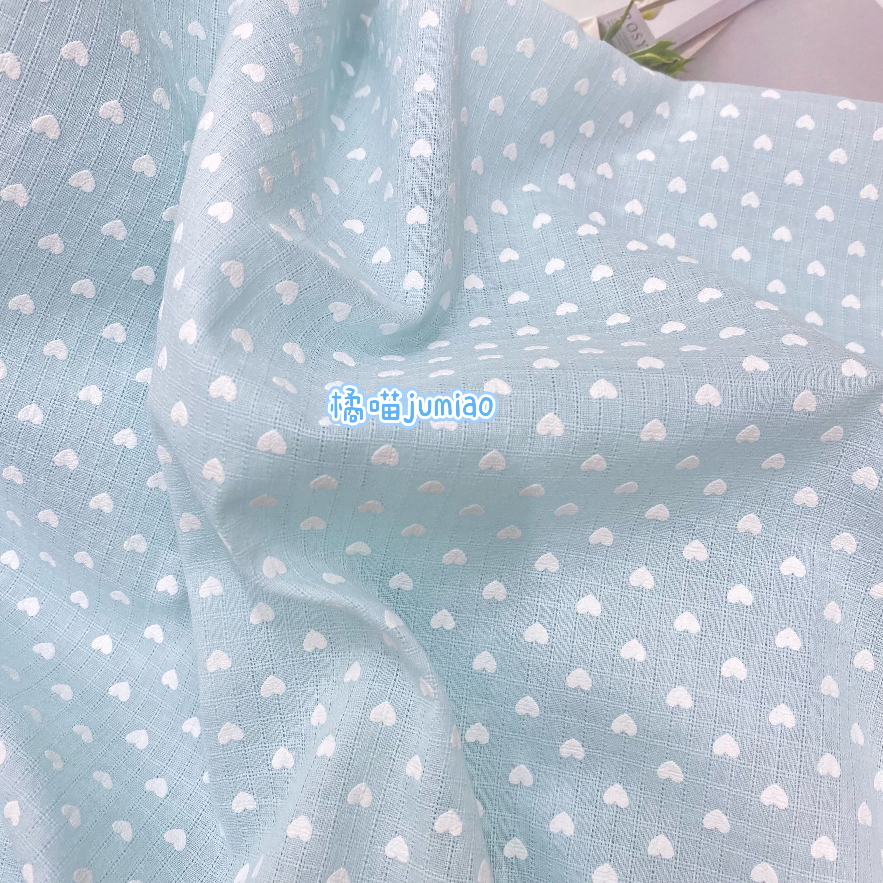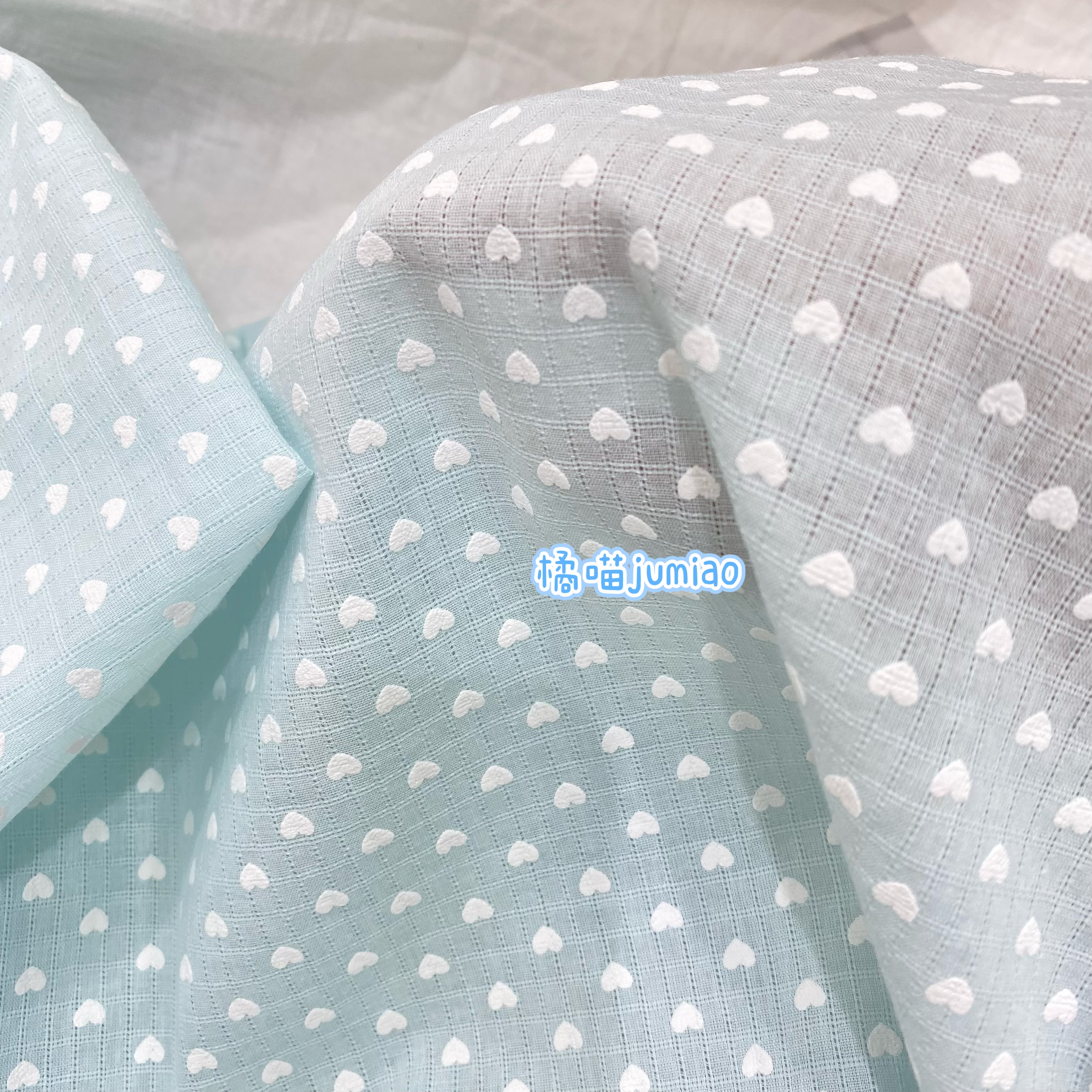 📚 橘喵jumiao 氧气少女奶黄浅蓝爱心提花棉感面料清新手工diy发圈布
