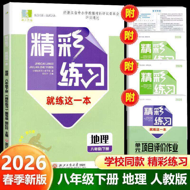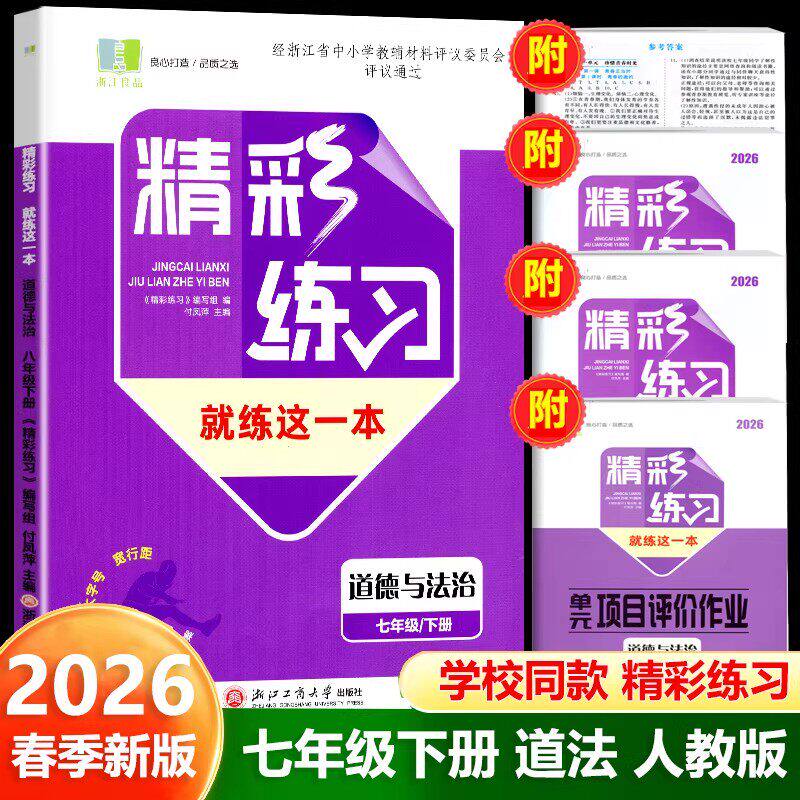 📚 学校同款2026春新版 精彩练习就练这一本语文数学英语科学历史与社会道德与法治良品书业七八年级上下册九年级全一册人教版浙教版