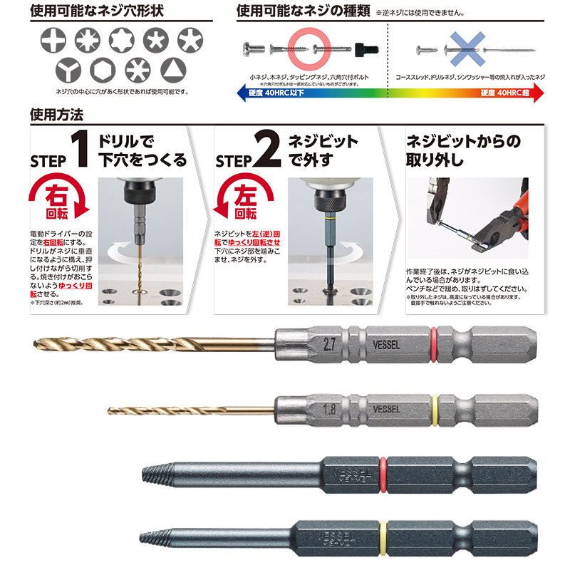 📚 日本VESSEL威威螺丝生锈滑牙断头进口取出器破损螺钉取出拆除工具