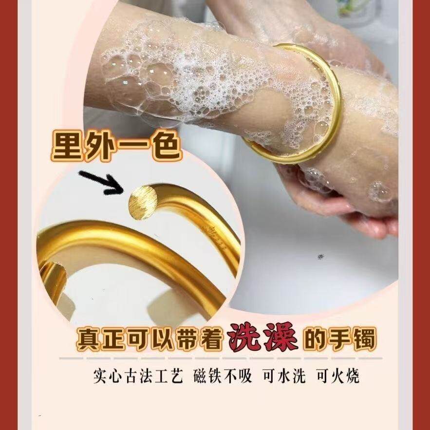 📚 新款古法传承手镯黄铜镀金女款实心素圈女款手镯素面手镯婚庆饰品