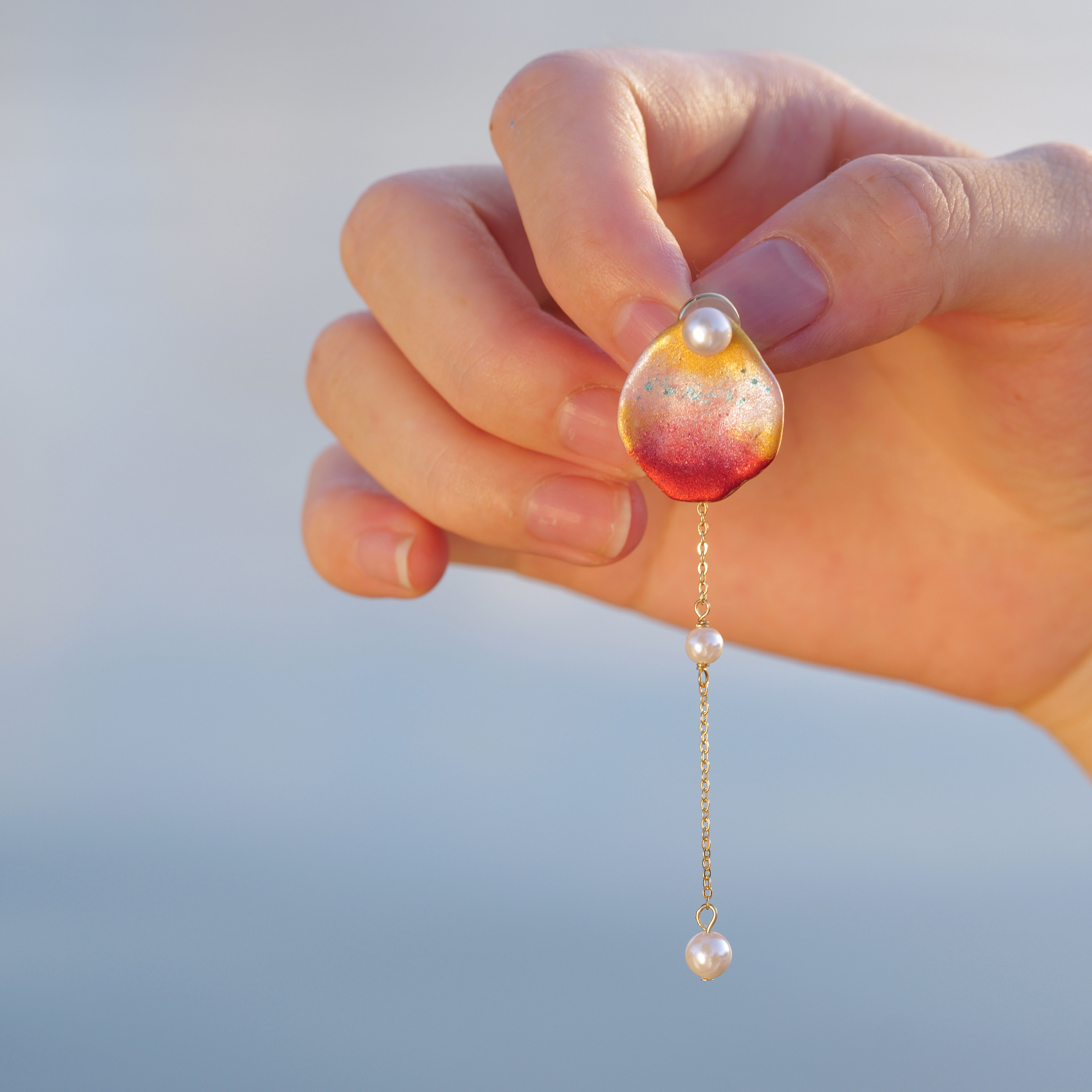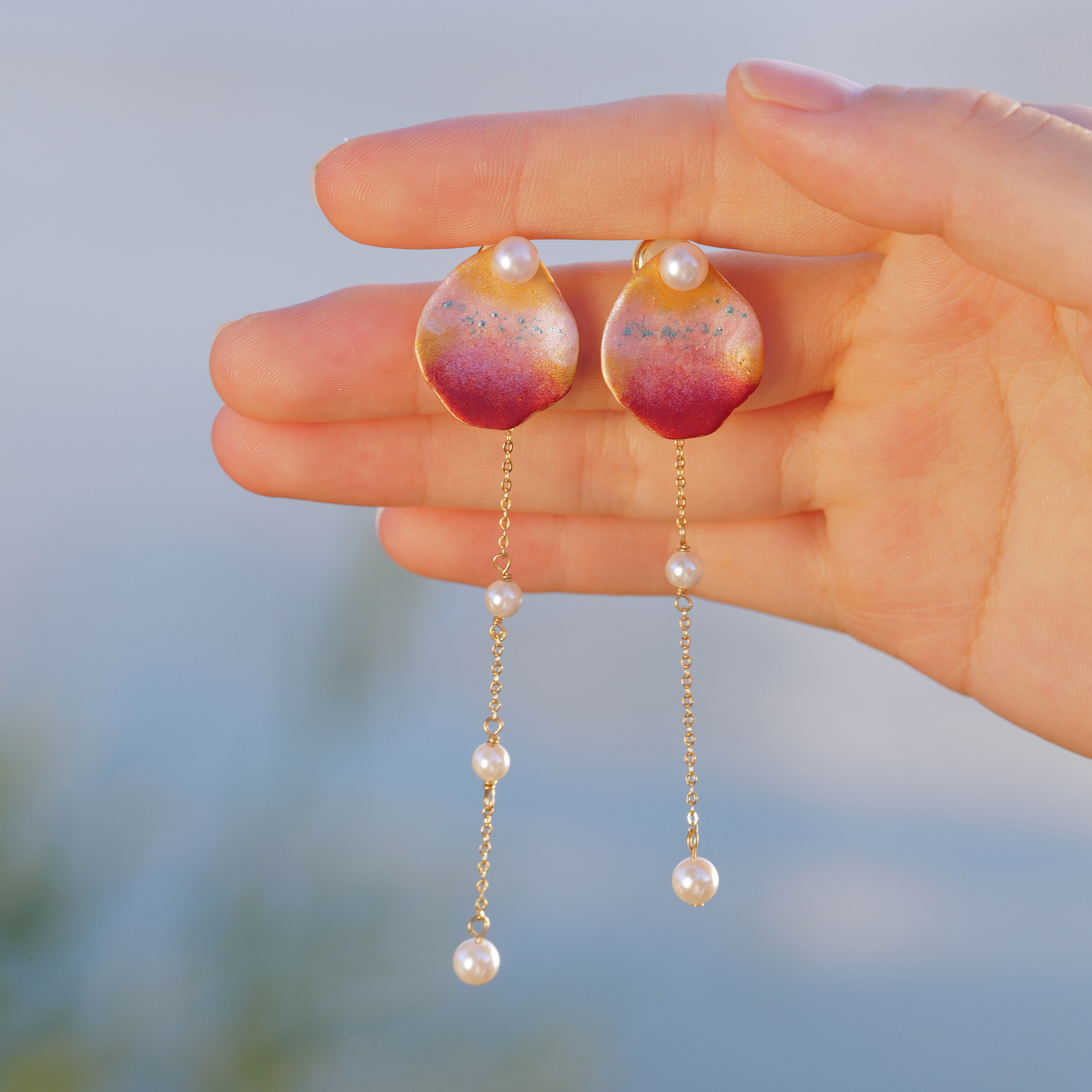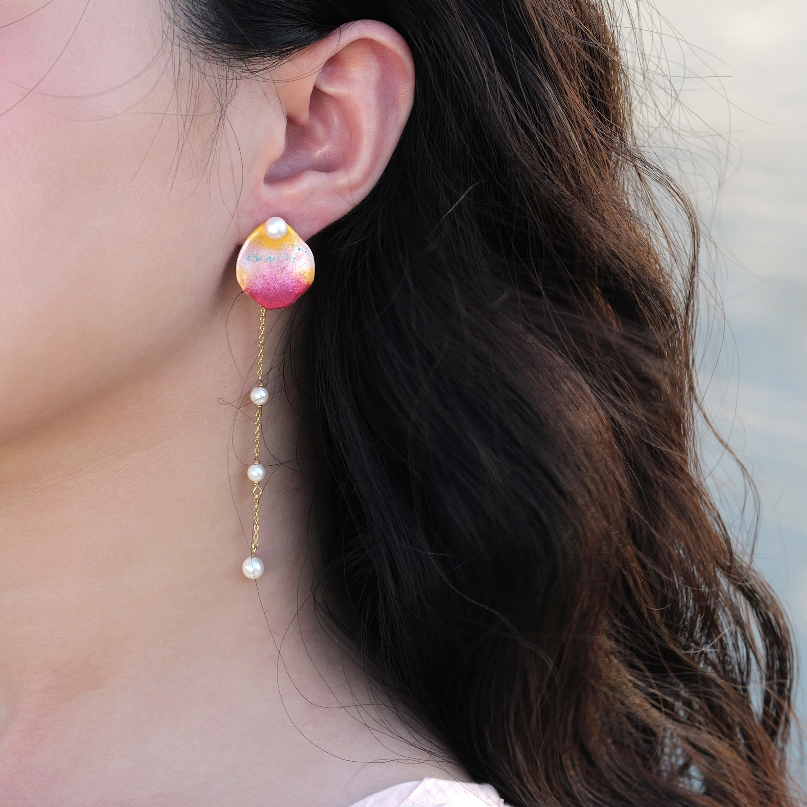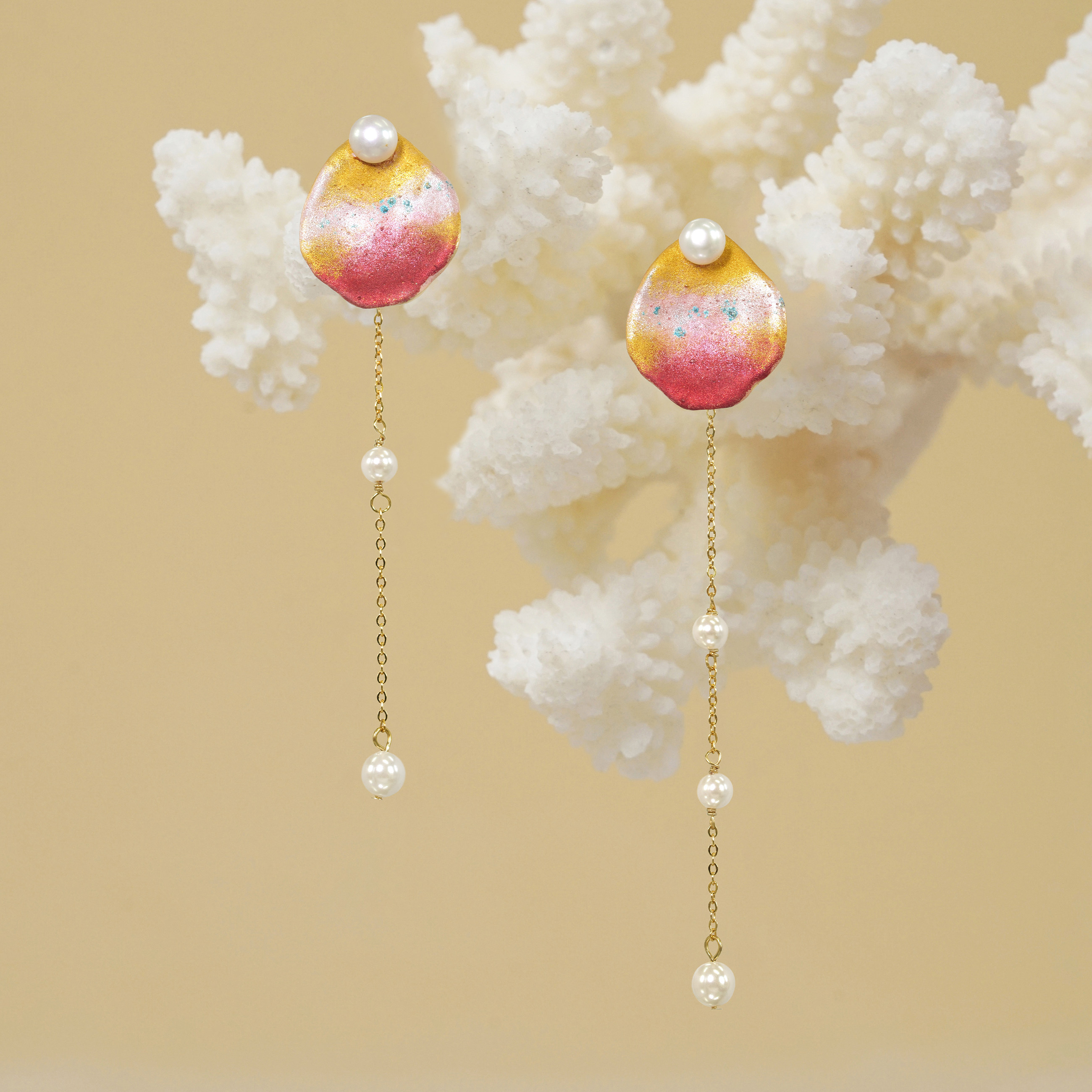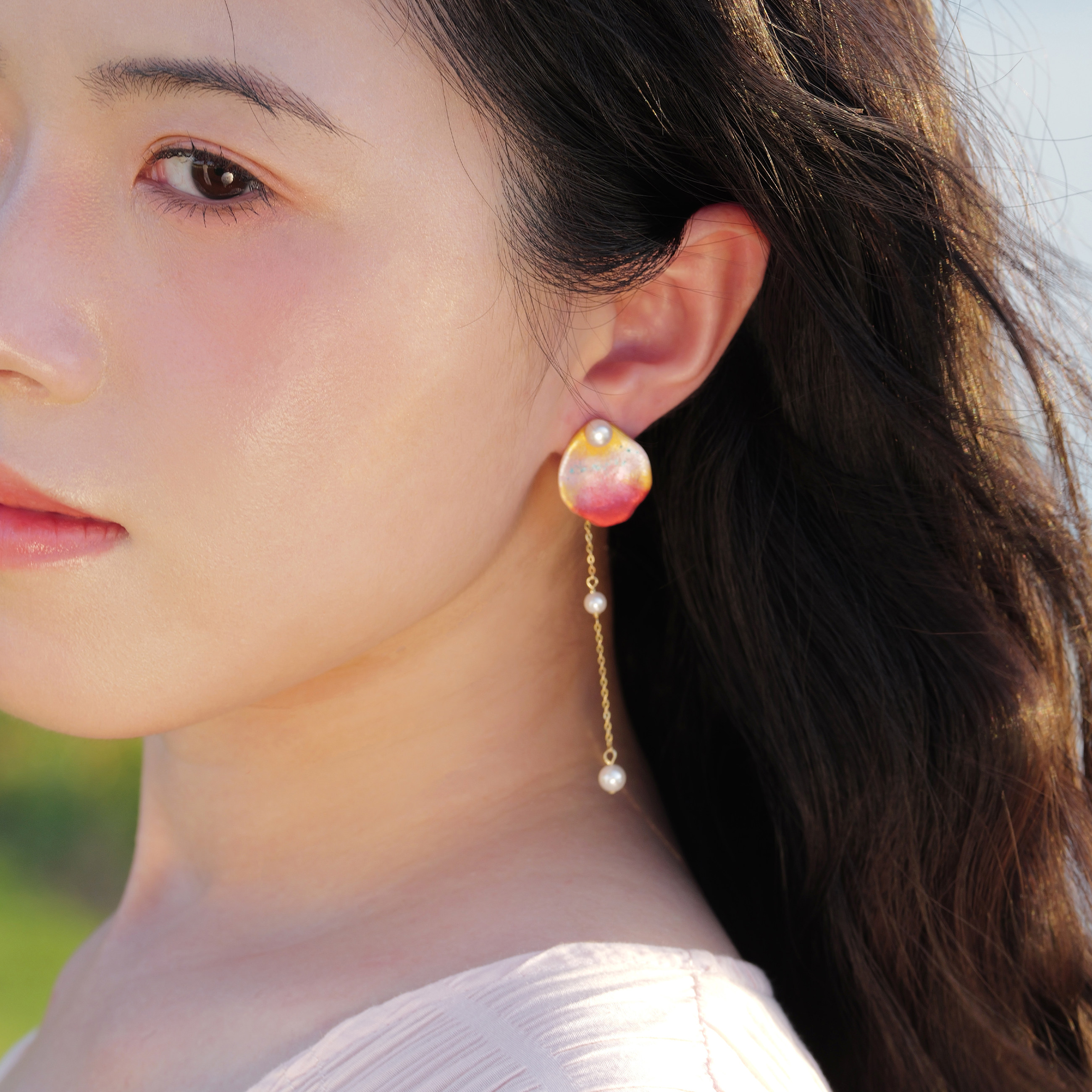 📚 绘间手绘【海霞之歌-珍珠流苏】法式粉色少女浪漫礼物仙耳环耳夹