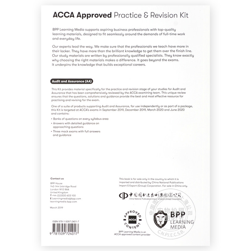 📚 现货 ACCA考试 新版 审计与认证练习册 英文原版 Audit and Assurance Practice & Revision Kit 对应F8 BPP出版 2019-2020