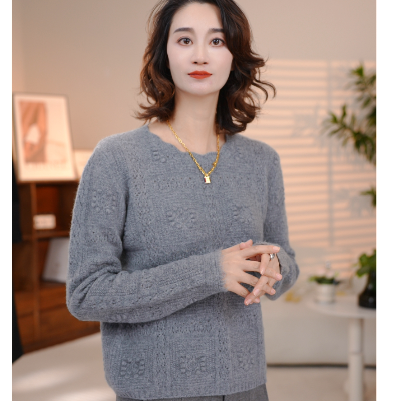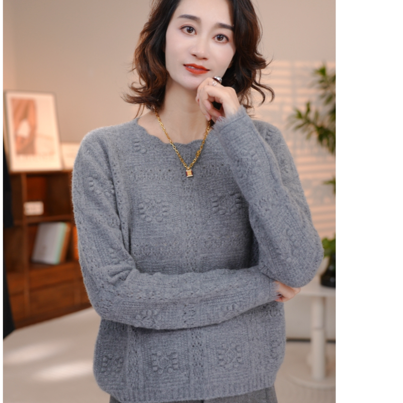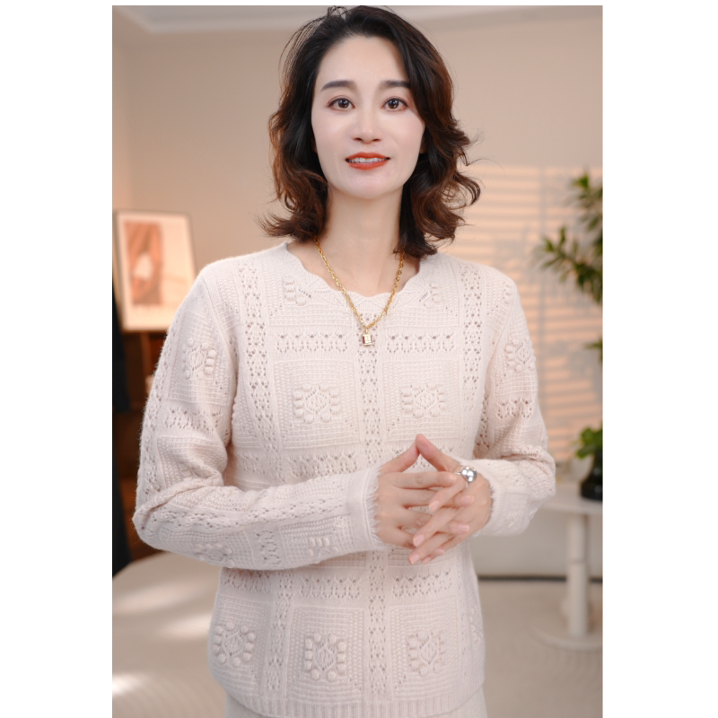 📚 100%纯羊毛正品设计师针织衫圆领女厚款时尚百搭钩花韩版慵懒风