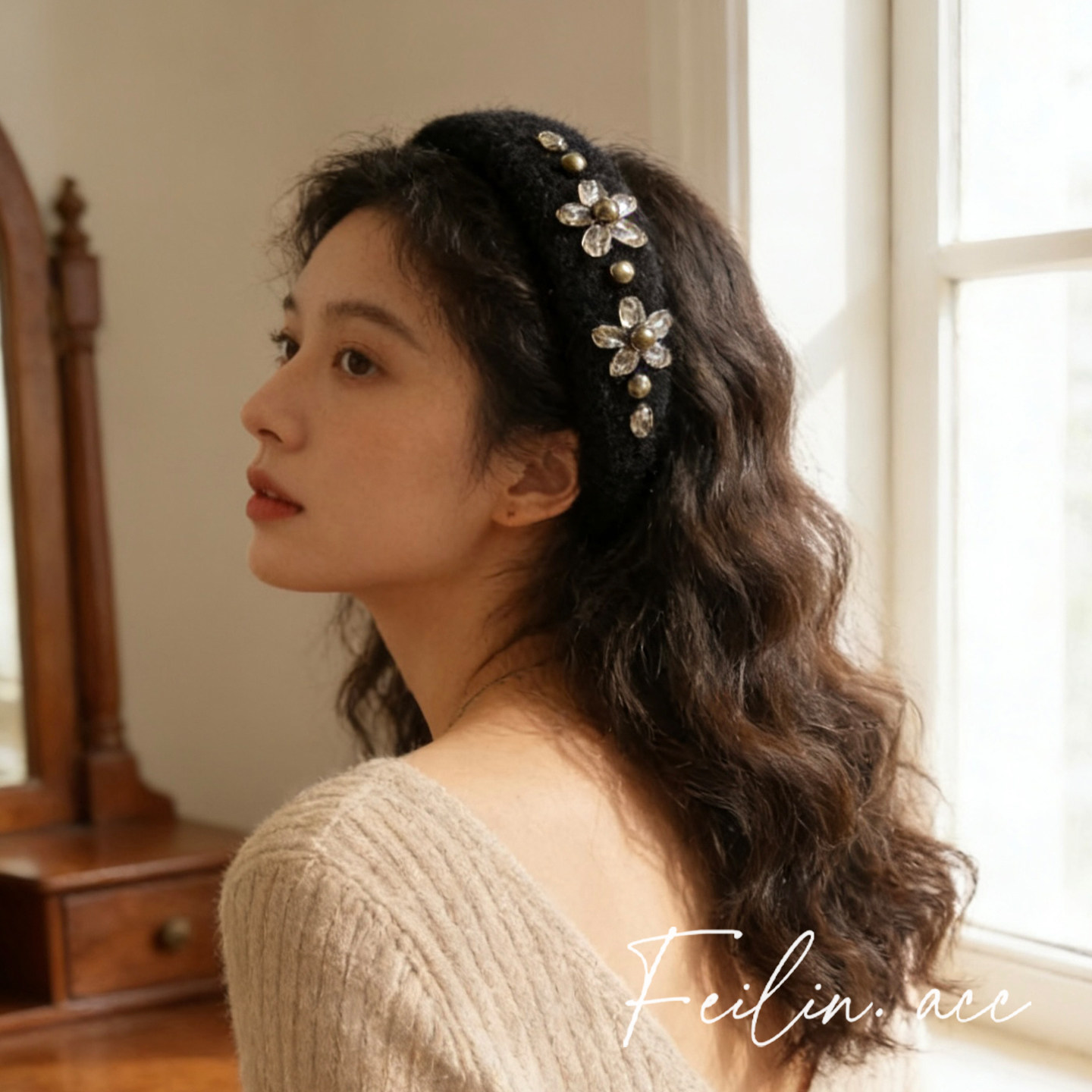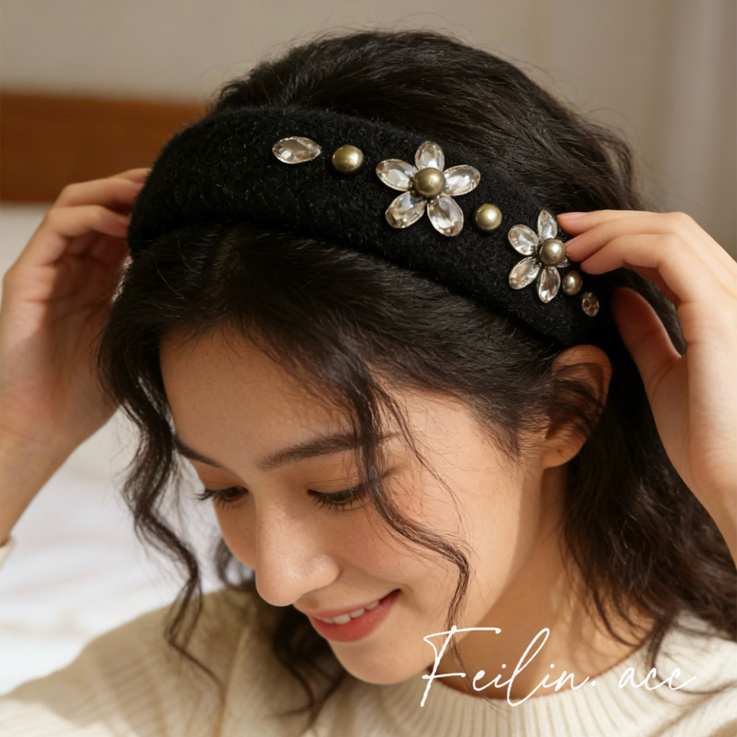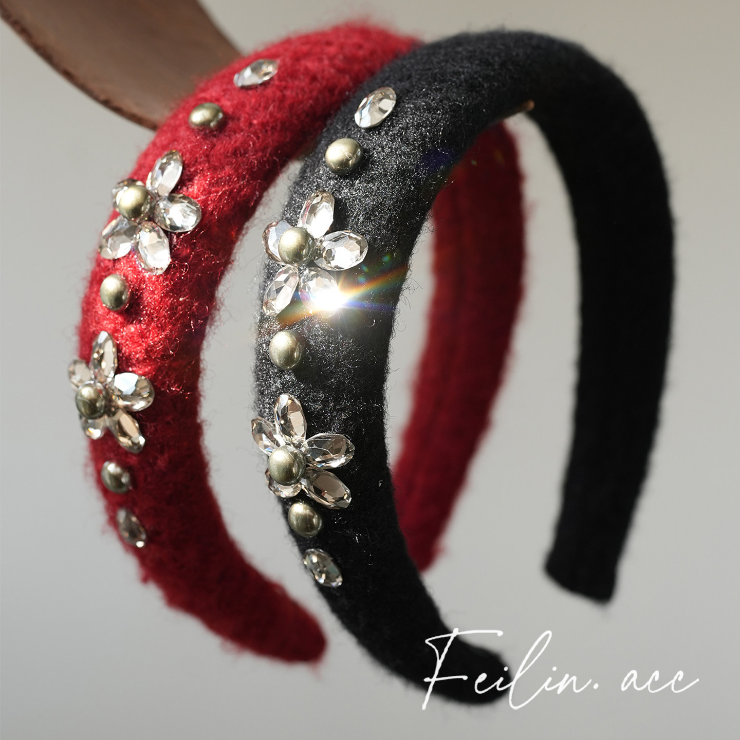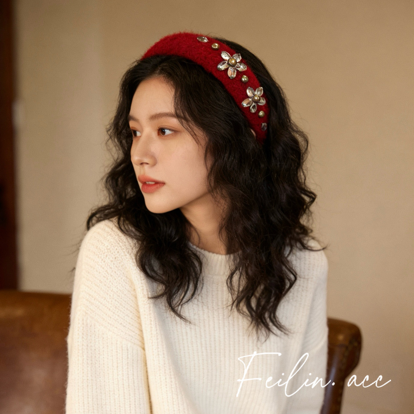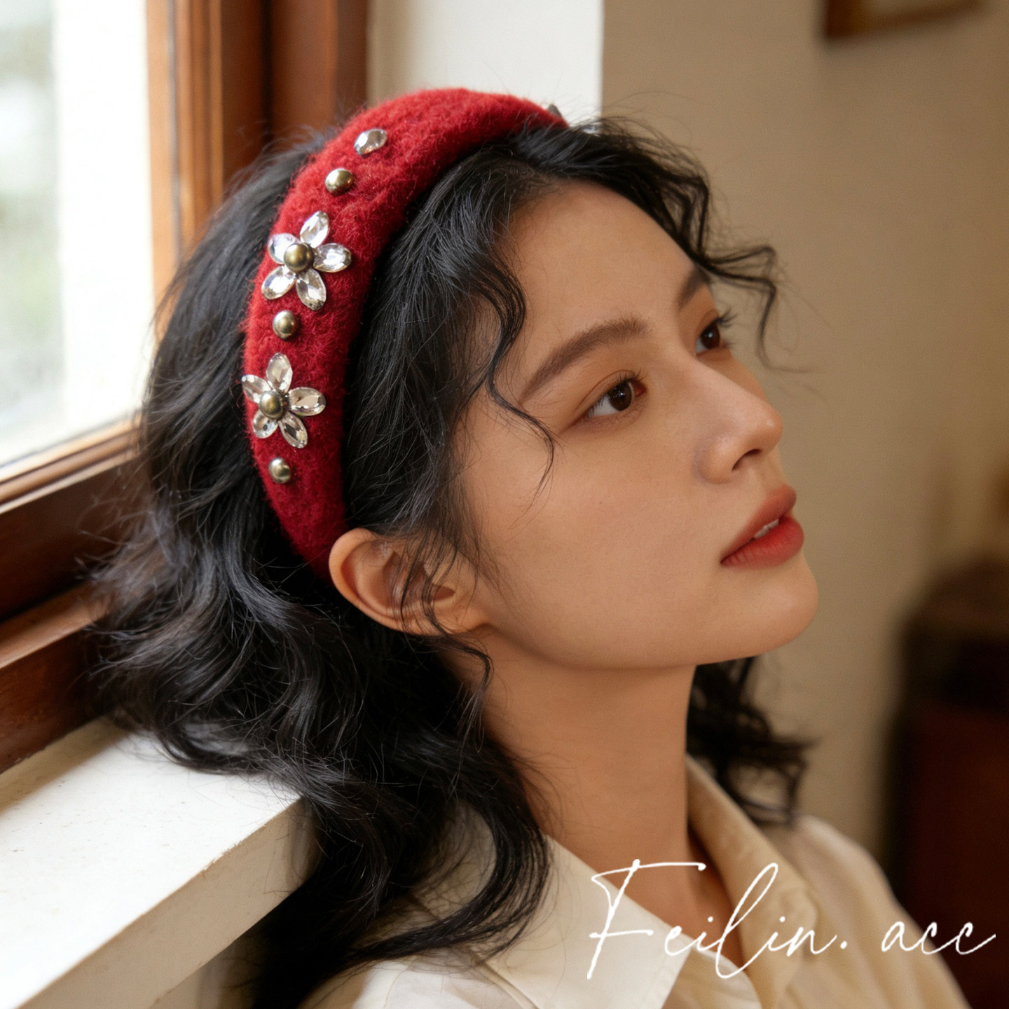 📚 秋冬红色毛绒发箍女宽边高颅顶头箍高级感发卡头饰新年压发发箍