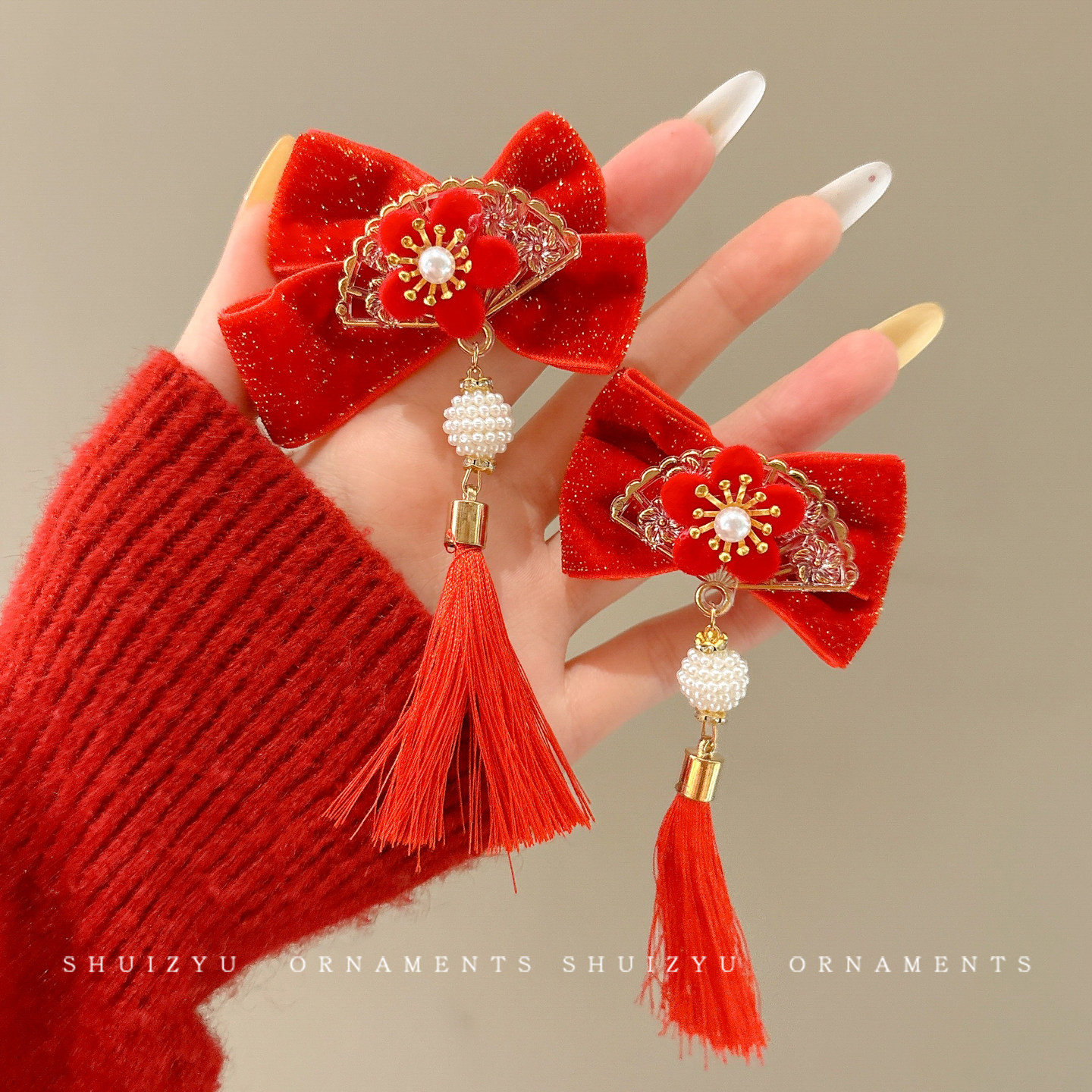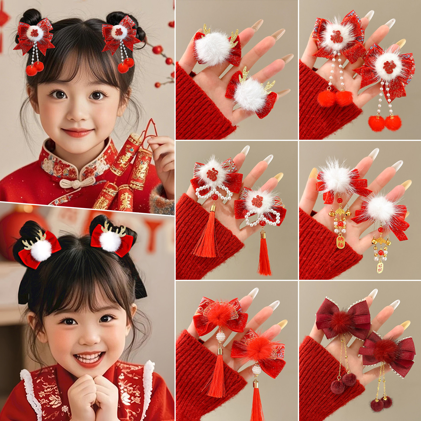 #新年发饰 #红色儿童发夹 #古风女孩宝宝 #宝宝拜年夹子头饰 #券后价6.9