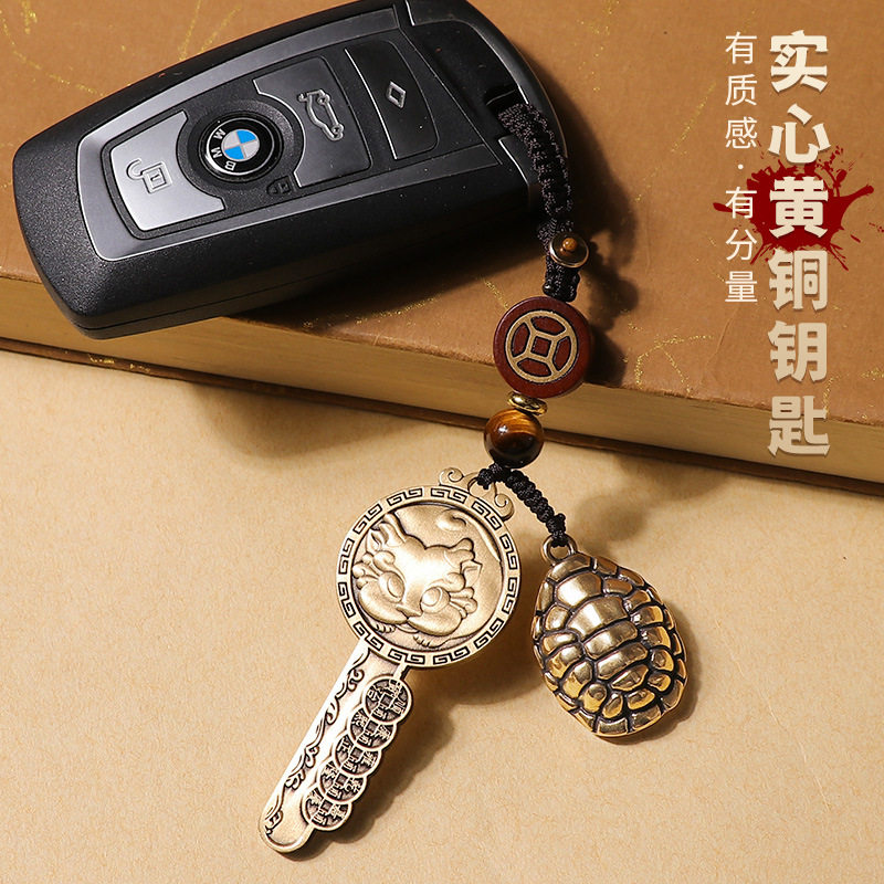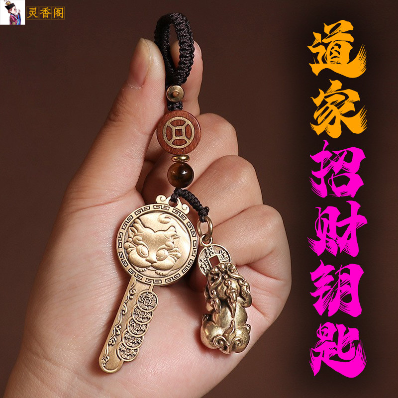 📚 道家招财法器貔貅五帝钱钥匙扣开财库钥匙旺正财聚财守财招财进宝
