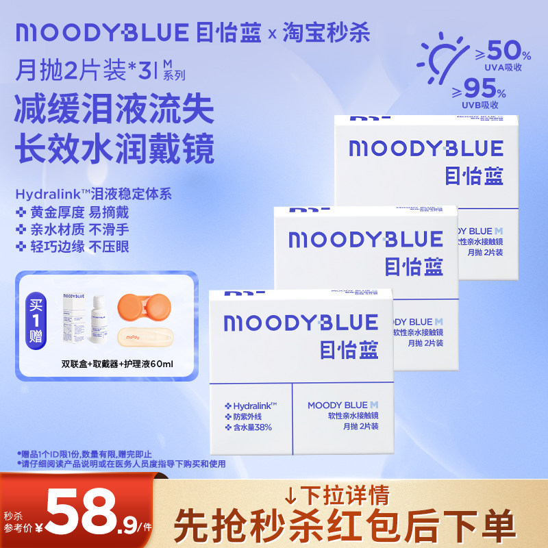 📚 MOODYBLUE月抛小蓝片透明片舒适水凝胶近视隐形眼镜新手友好2/6片