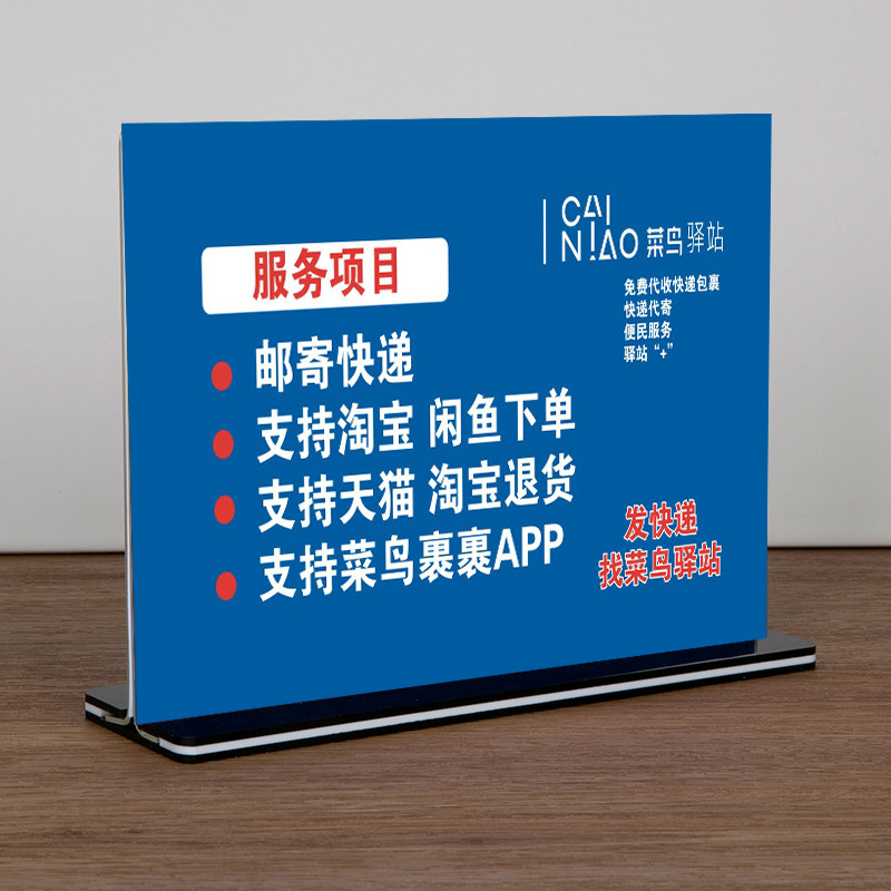 📚 菜鸟驿站寄件提示牌实名登记台卡桌牌开箱验视快递网点收寄件台牌
