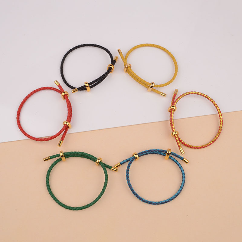📚 可调节皮绳手链大孔珠防水红绳可穿3D硬金珠子手绳2mm粗3mm粗手串