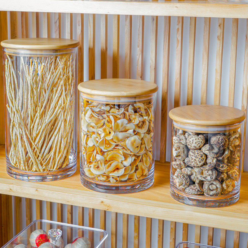 📚 竹盖密封罐用干货收纳瓶塑料透明储物罐按商用按压式日式密封瓶