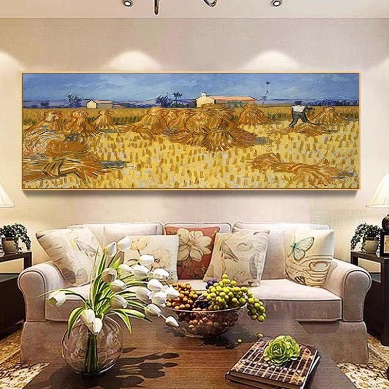 📚 包安装客厅装饰画梵高丰收油画世界名画挂画轻奢卧室床头风景壁画
