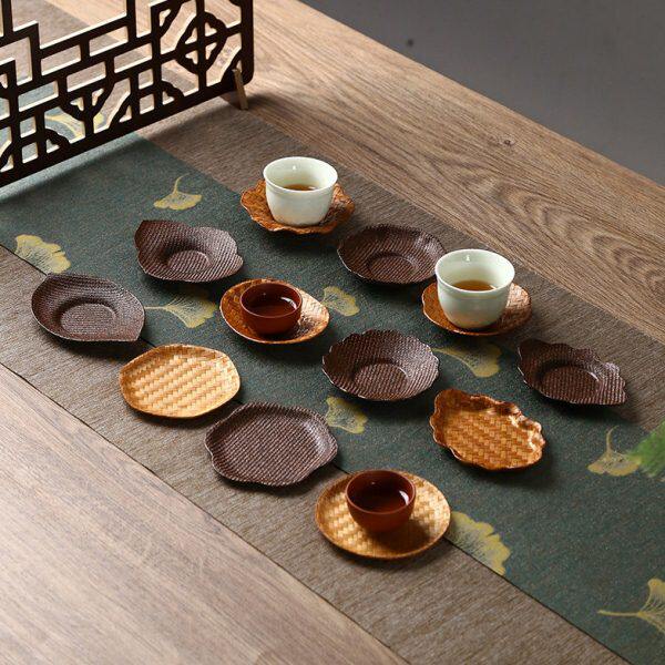 📚 竹制品手工竹编功夫茶杯垫隔热垫创意迷你果盘禅意杯垫杯碟茶杯托