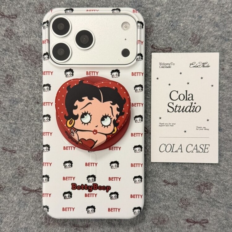 📚 磁吸菲林半包硬壳美式贝蒂小姐适用苹果16pro手机壳iPhone17pro卡通可爱保护套白色动漫红色防摔全包波蒂套壳