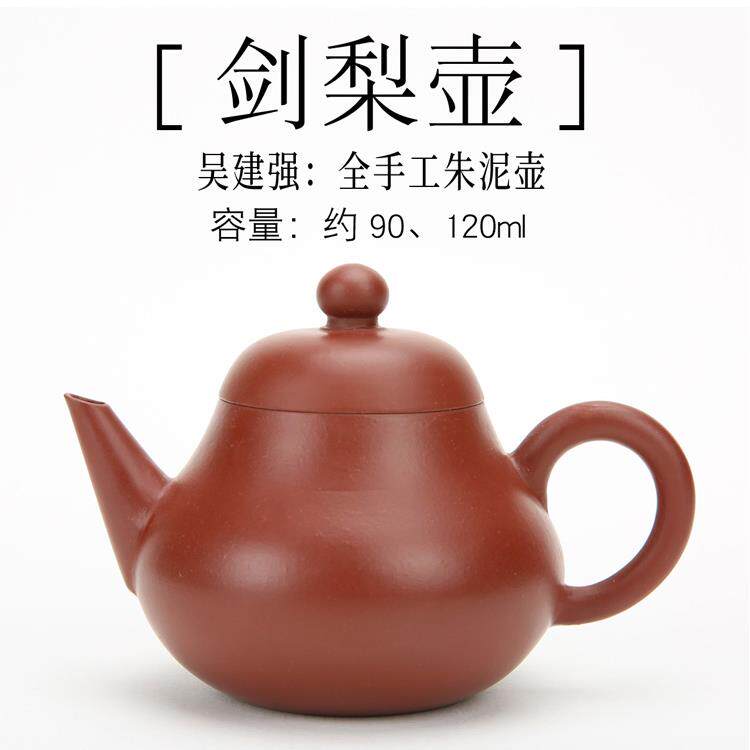 📚 吴建强潮州手拉壶全手工朱泥90/120cc剑梨壶紫砂壶小号红泥孟臣壶