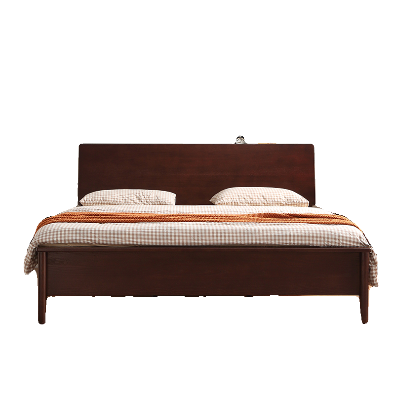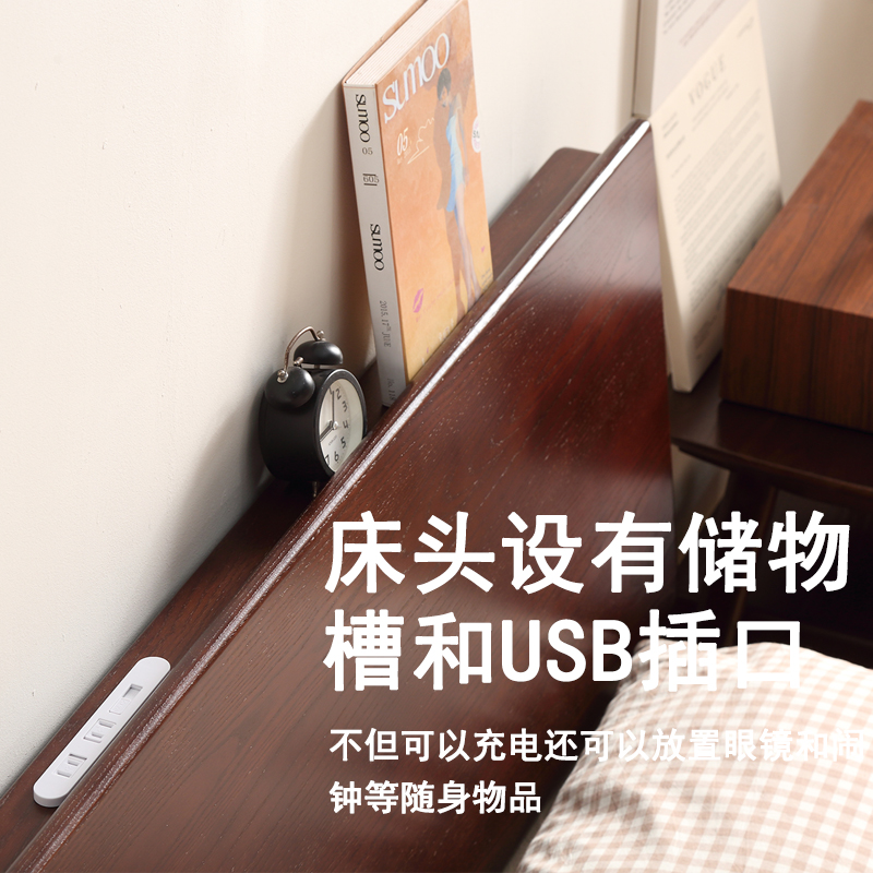 📚 家用黑胡桃木色1米8双人1米35单人1米2卧室储物高箱体日式实木床
