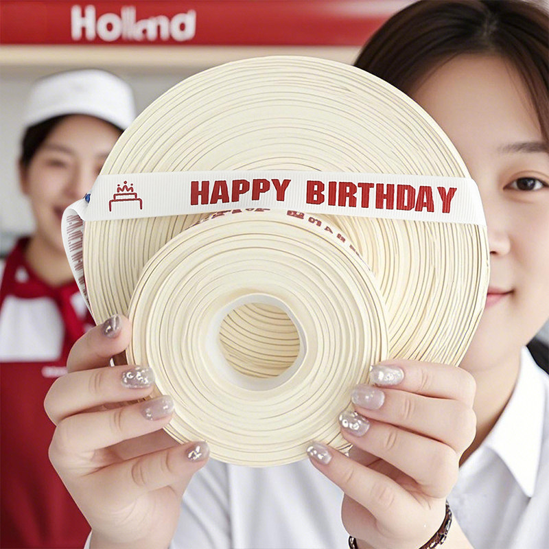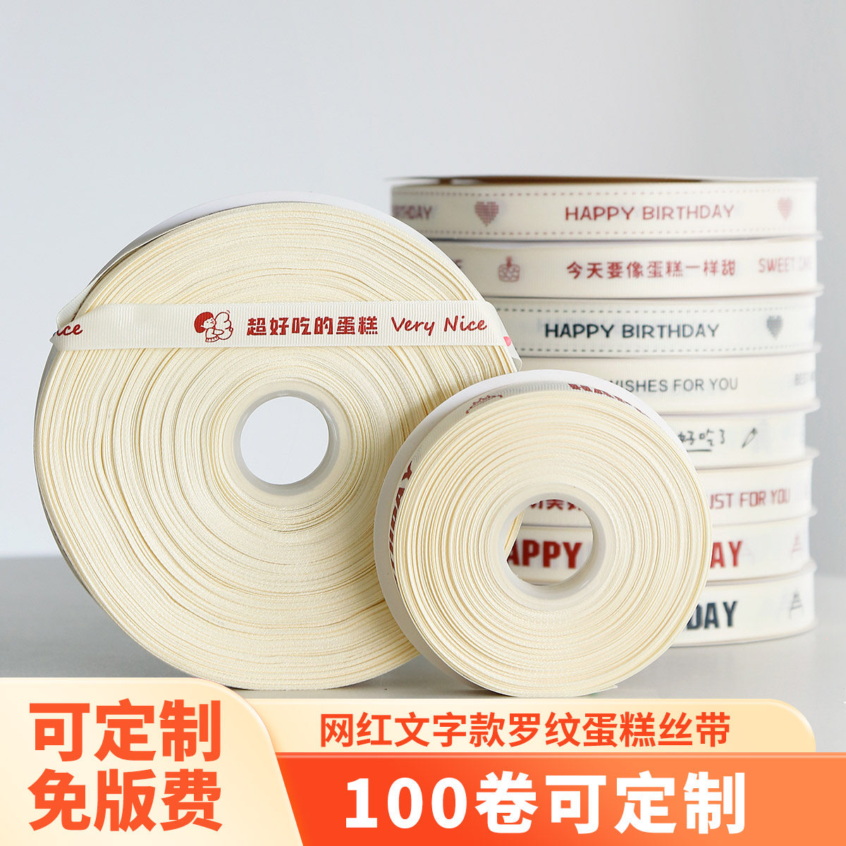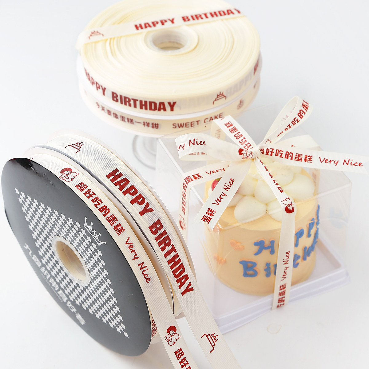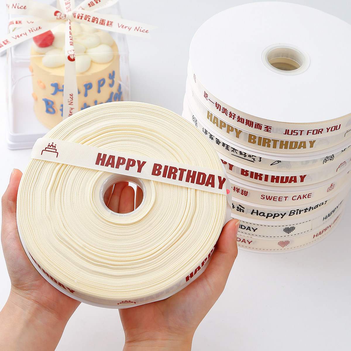 📚 8卷超值装 米白罗纹生日蛋糕丝带装饰打包英文花束礼品盒捆绑彩带