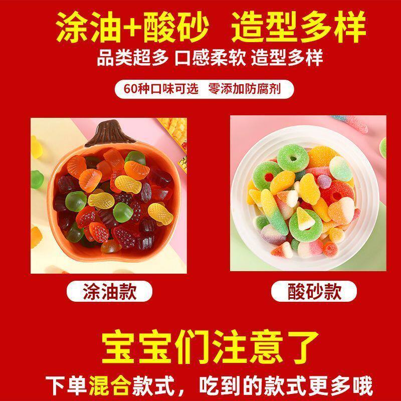 🍭多彩橡皮软糖酸砂爆浆涂油水果味,一口咬下,休闲零食新风尚!🎉券后价仅4.2,你怎能错过?