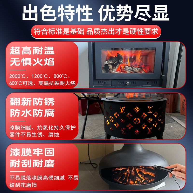 📚 火炉专用漆耐高温自喷漆2000度壁炉耐火防火锅炉金属防锈油漆黑色