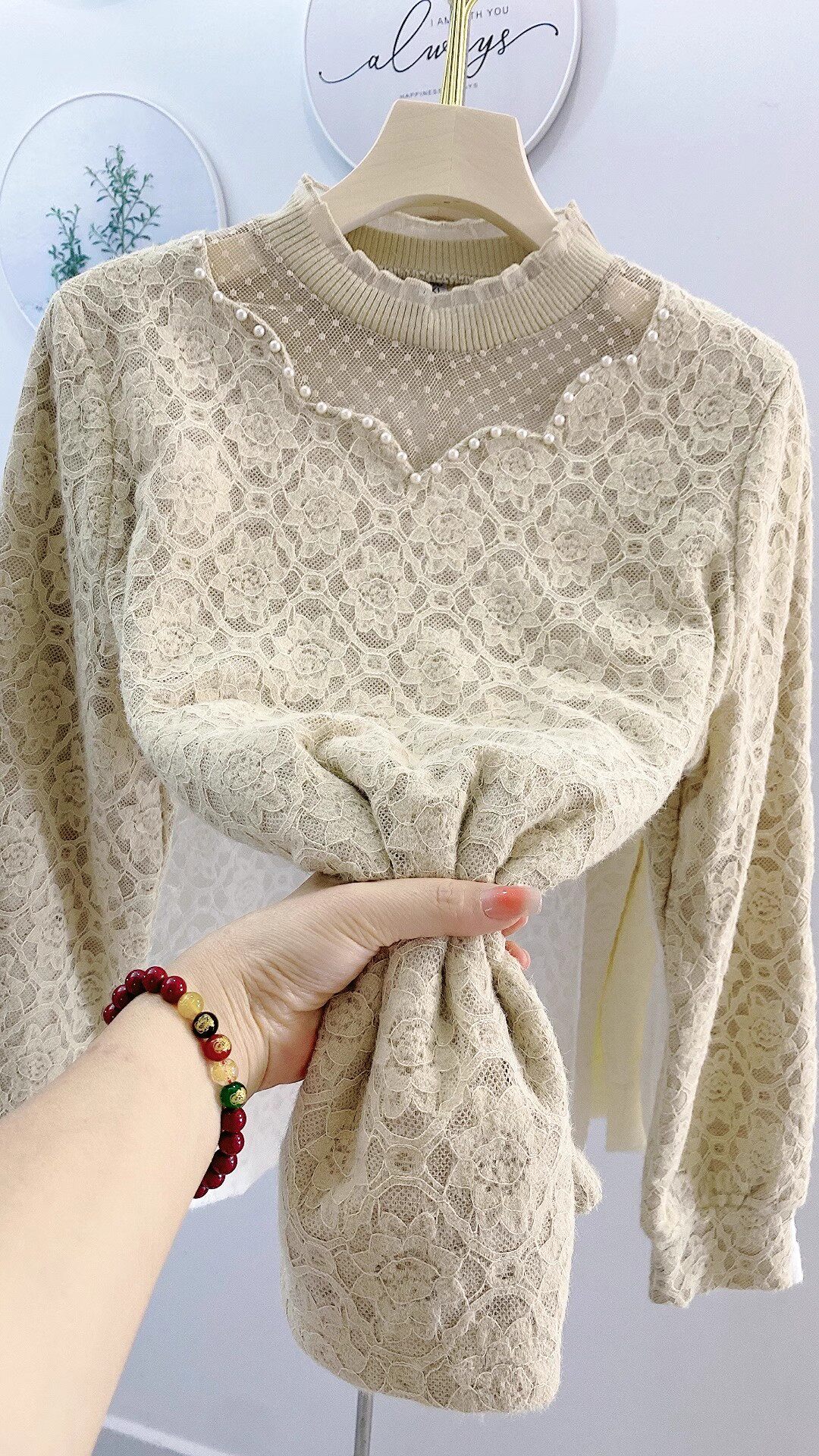 📚 冬立领木耳边蕾丝加绒打底衫女宽松网纱衬衫显瘦遮肉小香风小衫