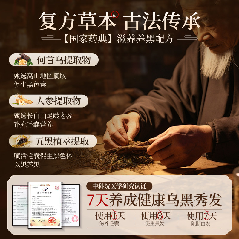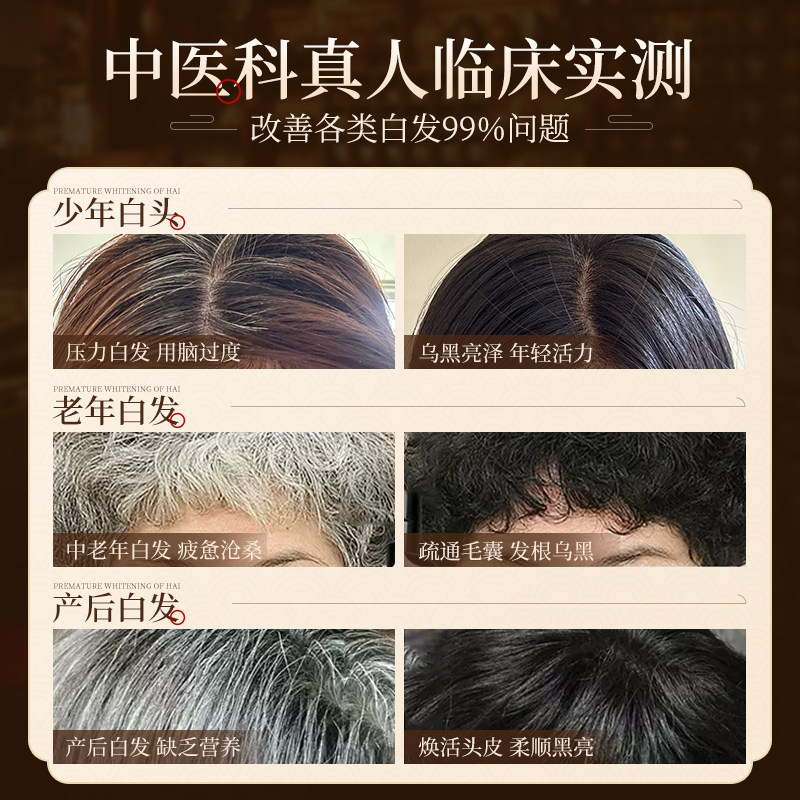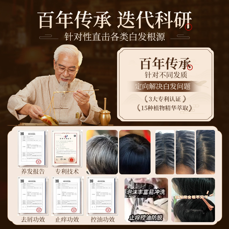 📚 人参何首乌洗发水侧柏叶草本去屑白头发变黑转黑发神器官方旗舰店