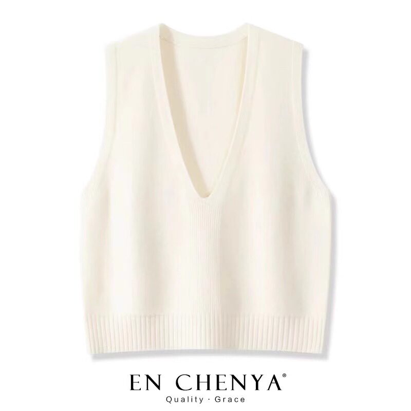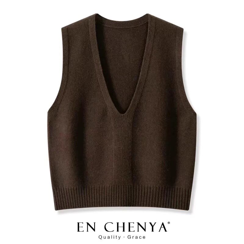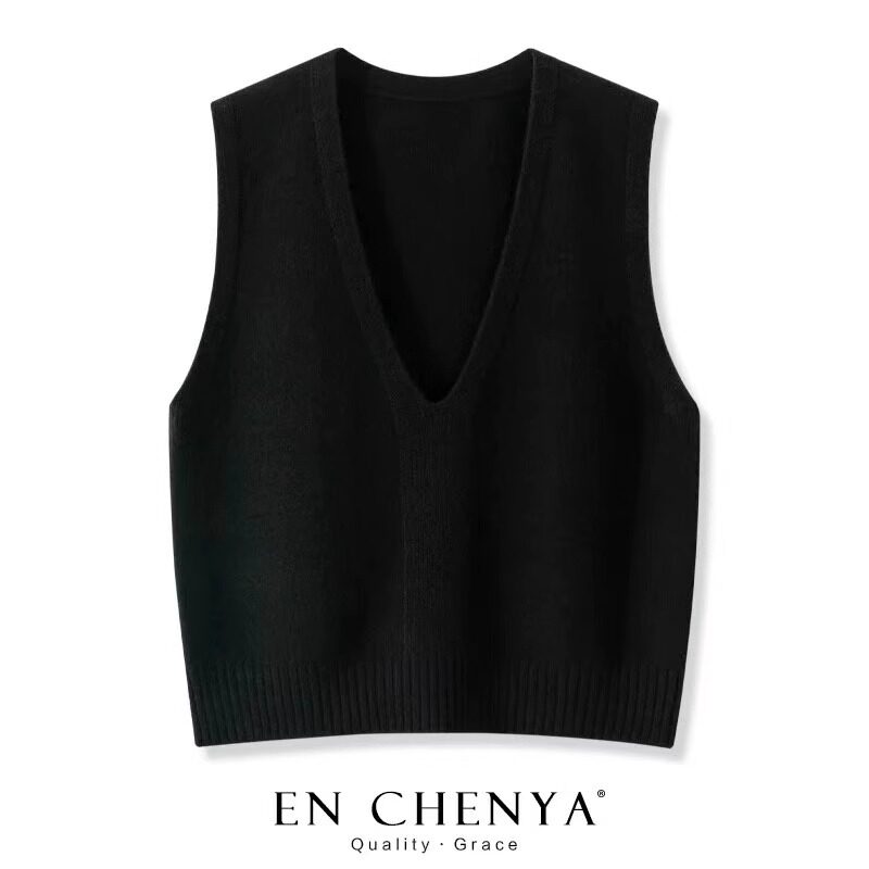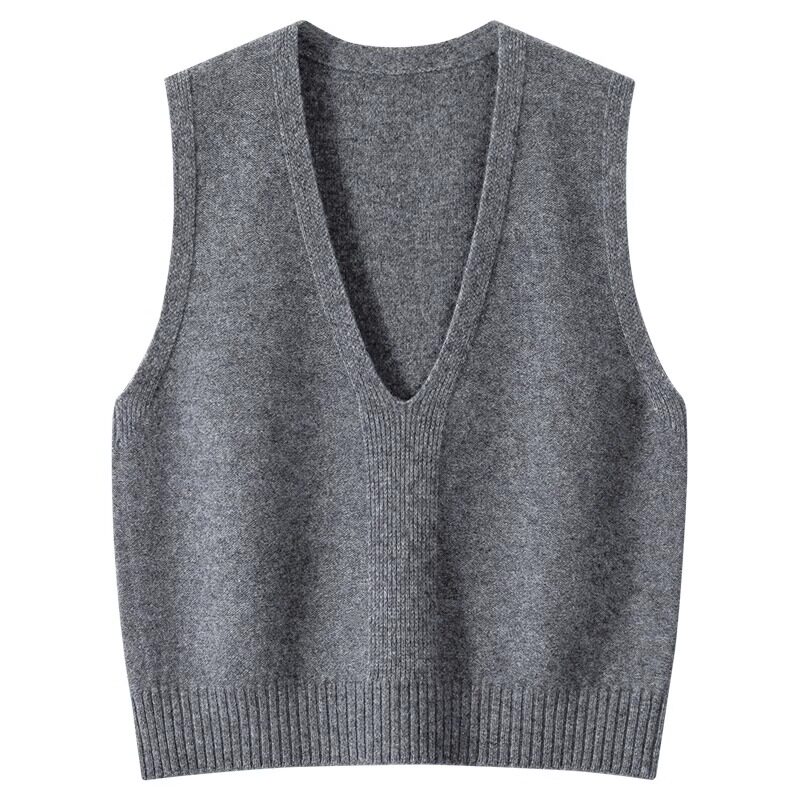 📚 纯羊毛洋气大V领针织马甲女款2025新款春秋叠穿纯色毛衣背心坎肩
