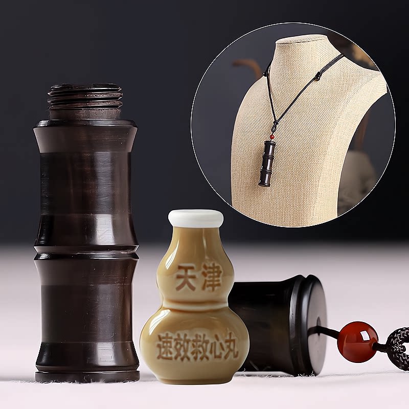 📚 救心丸小瓶随身挂脖便携小药瓶黑檀木吊坠挂件项链急救药罐小药盒