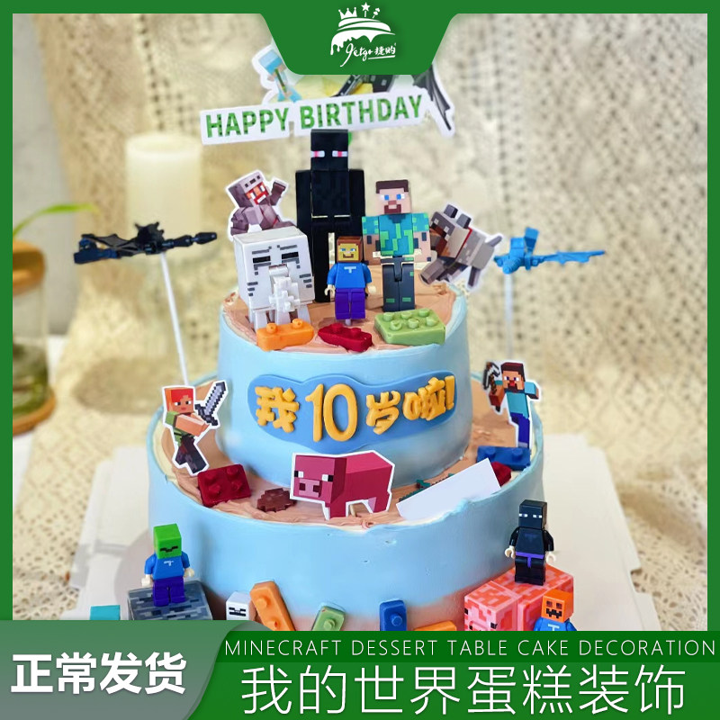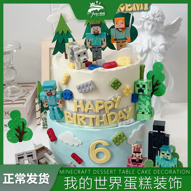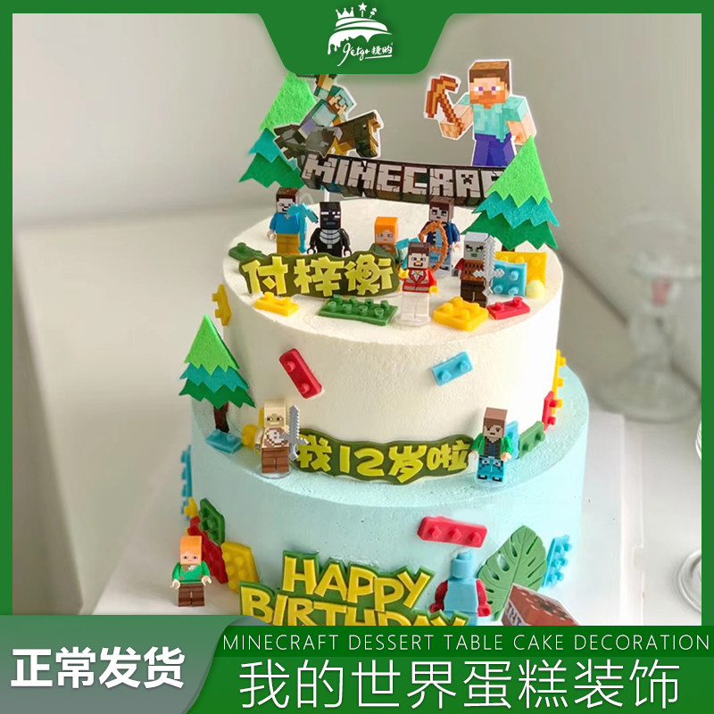 📚 minecraft我的世界大插牌mc游戏主题甜品台生日布置蛋糕装饰叶子