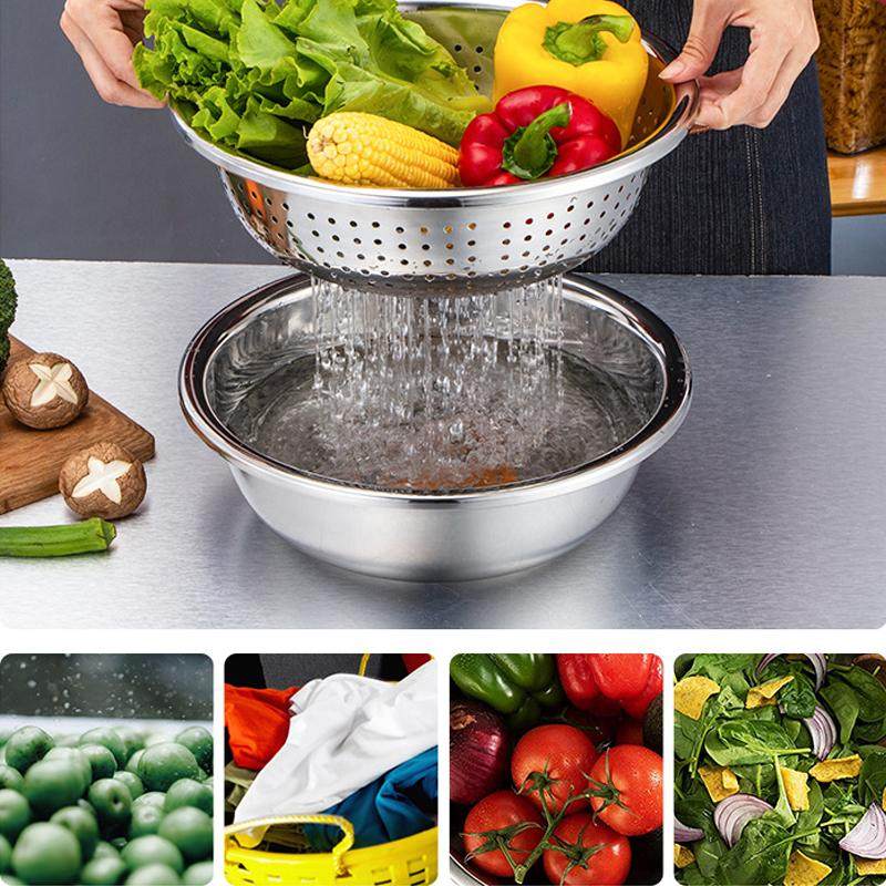 📚 加厚食品级不锈钢盆特大号圆形厨房漏水快洗菜水果漏盆沥水盆商用