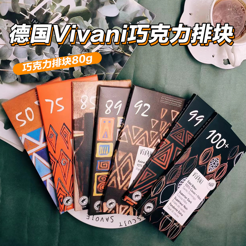 📚 德国进口Vivani薇莉50%牛奶100纯可可脂黑巧克力排块80g健身零食