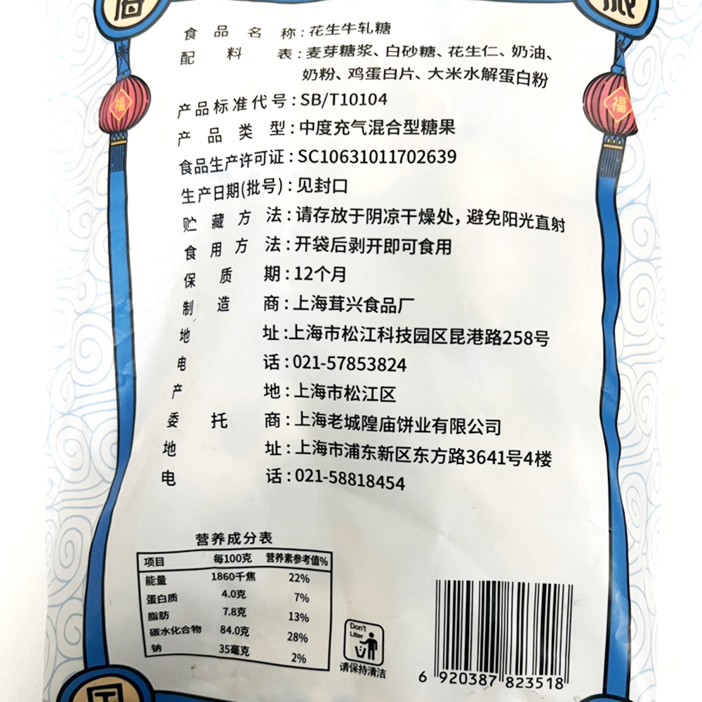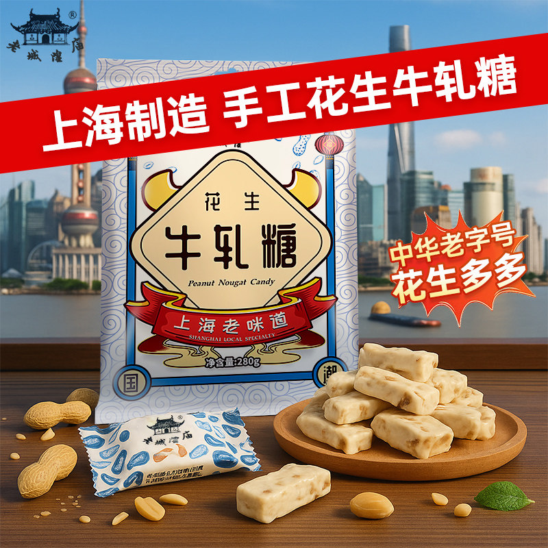 📚 老城隍庙 手工花生牛轧糖280g 上海特产中华老字号旅游伴手礼