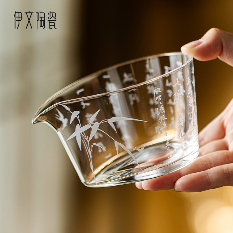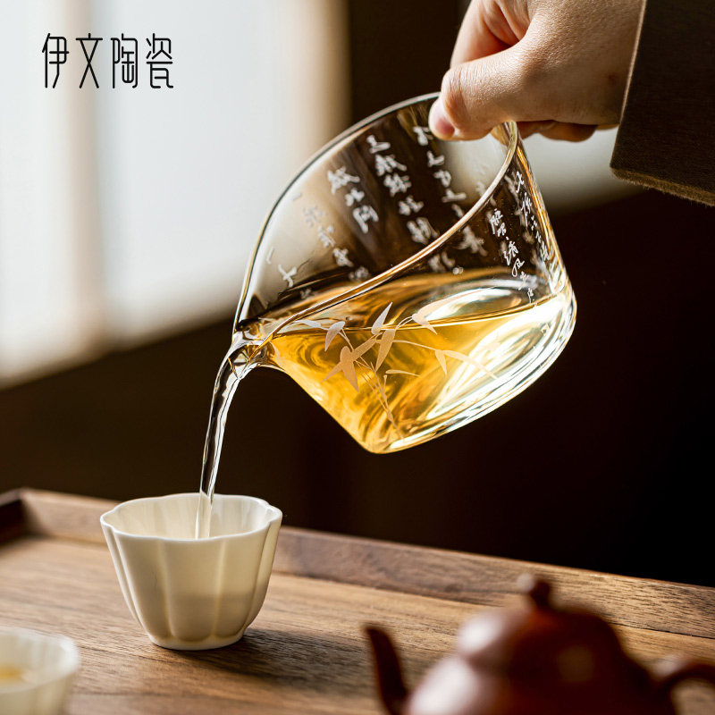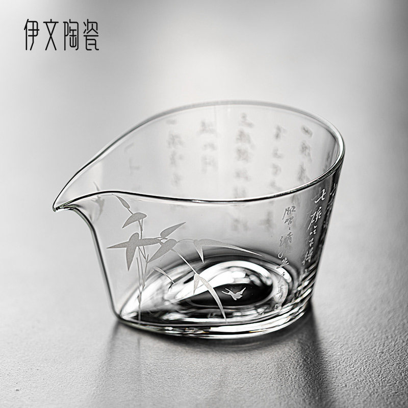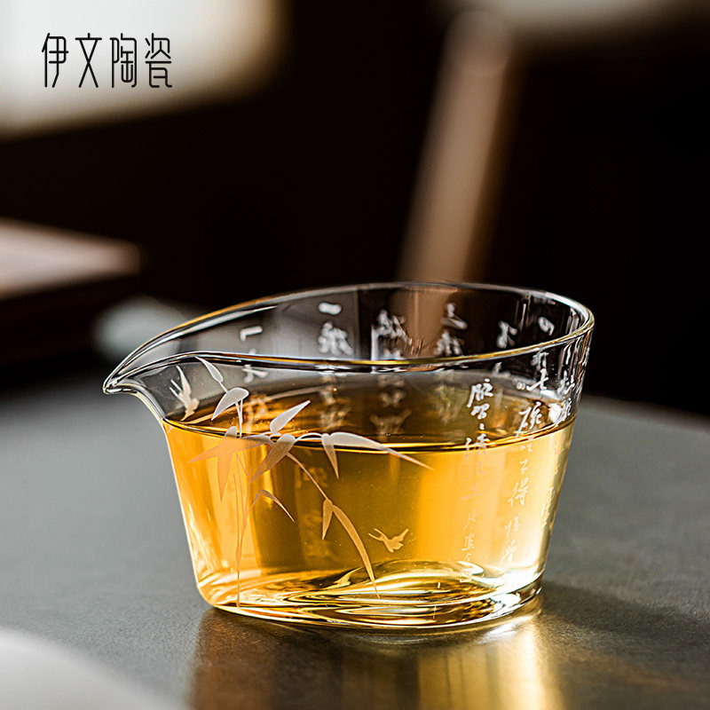 📚 伊文陶瓷诗文公道杯玻璃分茶器家用功夫茶具泡茶透明公杯茶海分茶