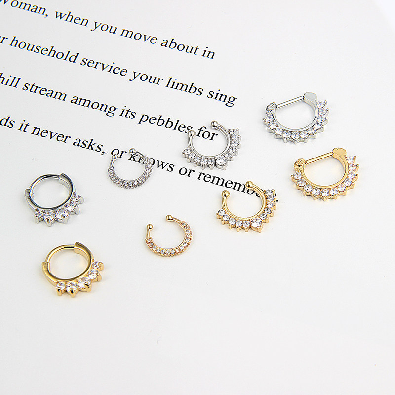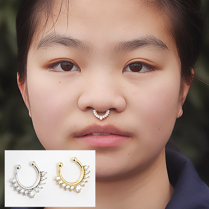 📚 时尚钛钢无洞假有孔鼻中隔耳骨环女人体穿刺鼻钉鼻夹假鼻环男装酷