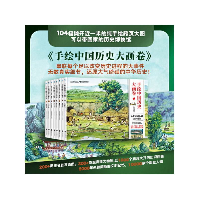 📚 手绘中国历史大画卷(精装全8册,致敬5000年未曾间断的文明记忆,从夏商周到元明清,全景视觉构图,收藏级别的画卷型中国通史)