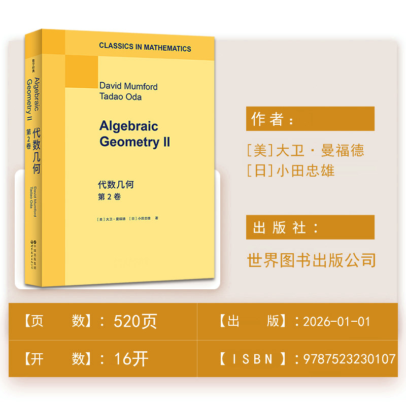 📚 代数几何 第2卷(英文版)大卫·曼福德 著 Algebraic Geometry II 经典现代代数几何教材数学经典 世界图书出版公司