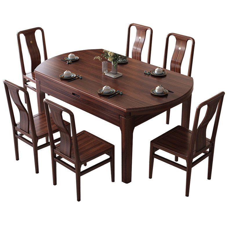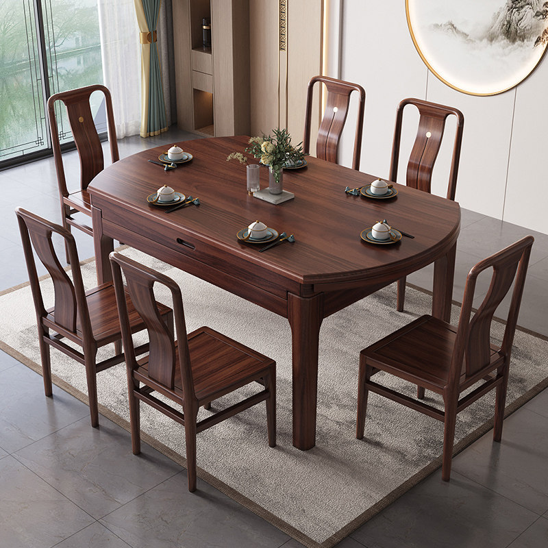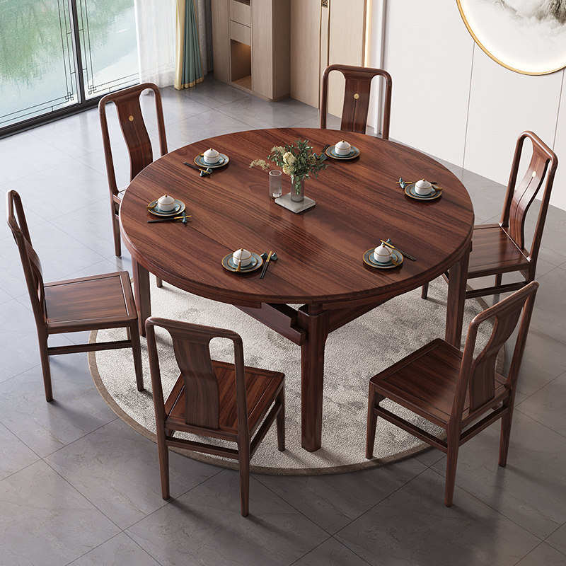 📚 乌金木实木餐桌全实木折叠桌伸缩家用椭圆折叠中式小户型吃饭桌子