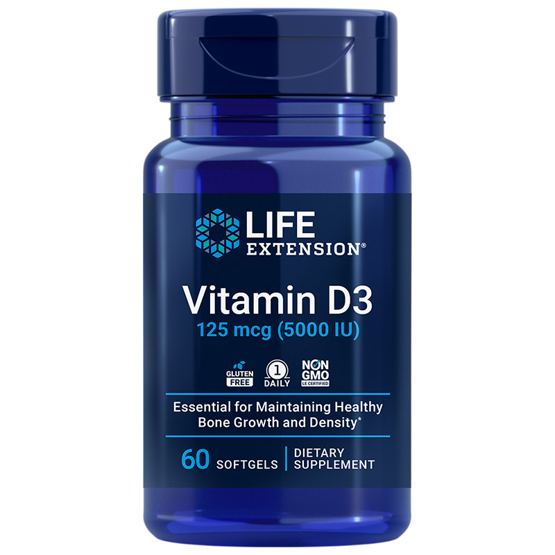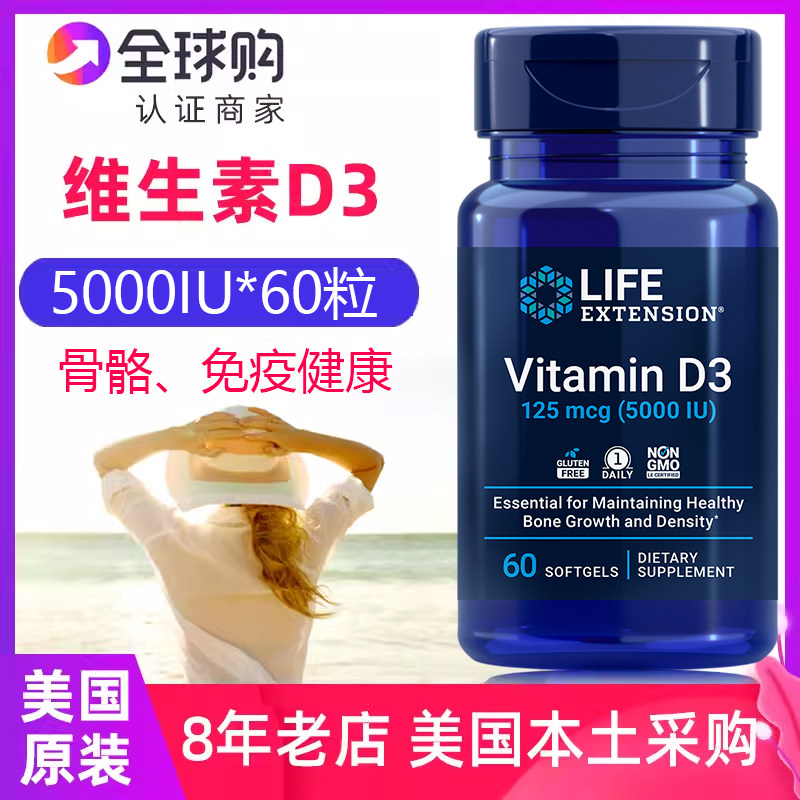 📚 美国lifeextension维生素D3补充剂60粒5000IU VitaminD3骨骼免疫