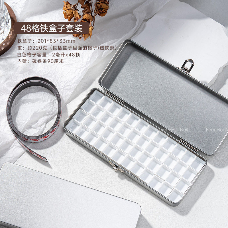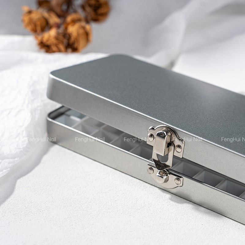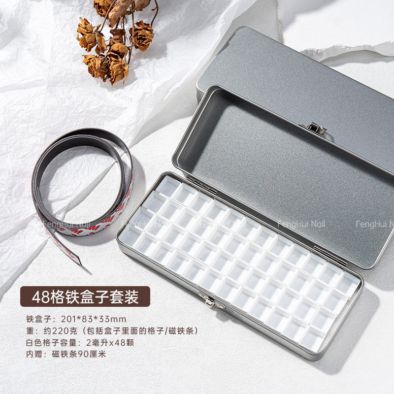 📚 美甲彩绘胶拍拍胶收纳盒长方形马口铁盒自磁吸条翻盖色胶分装盒子