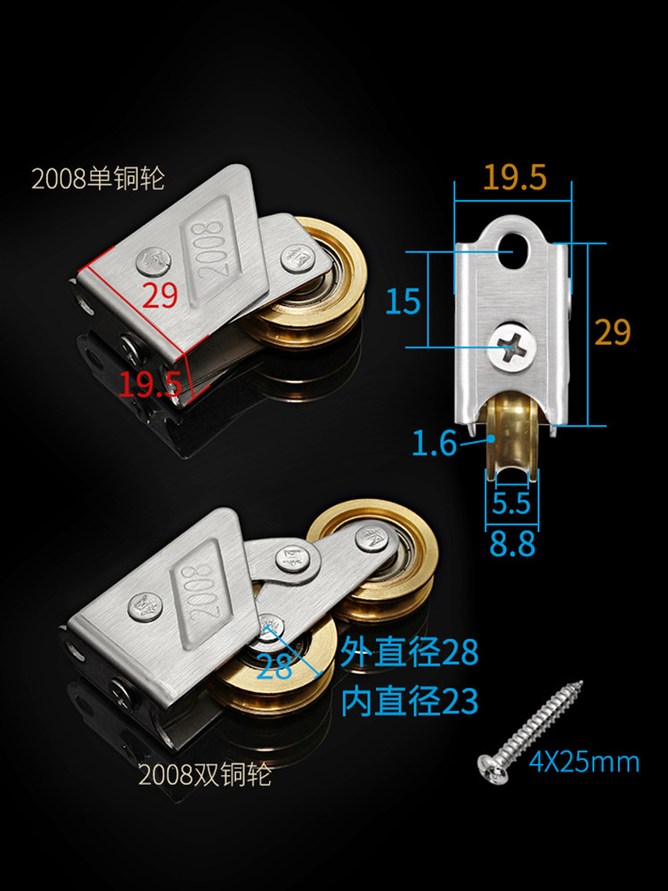 📚 2008型铝合金门窗滑轮老式推拉门滑轮移门轮2078平移窗户轨道滚轮