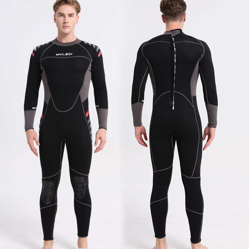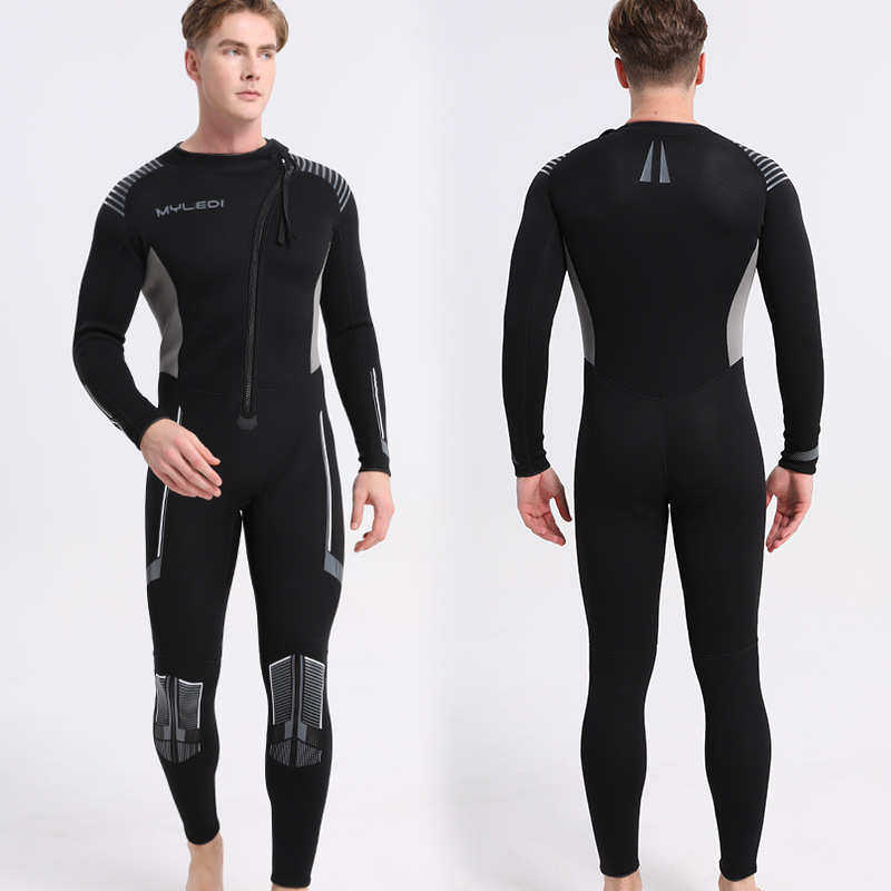 📚 新款欧码3mm潜水服连体潜水衣前开拉链长袖长裤保暖潜水服男士