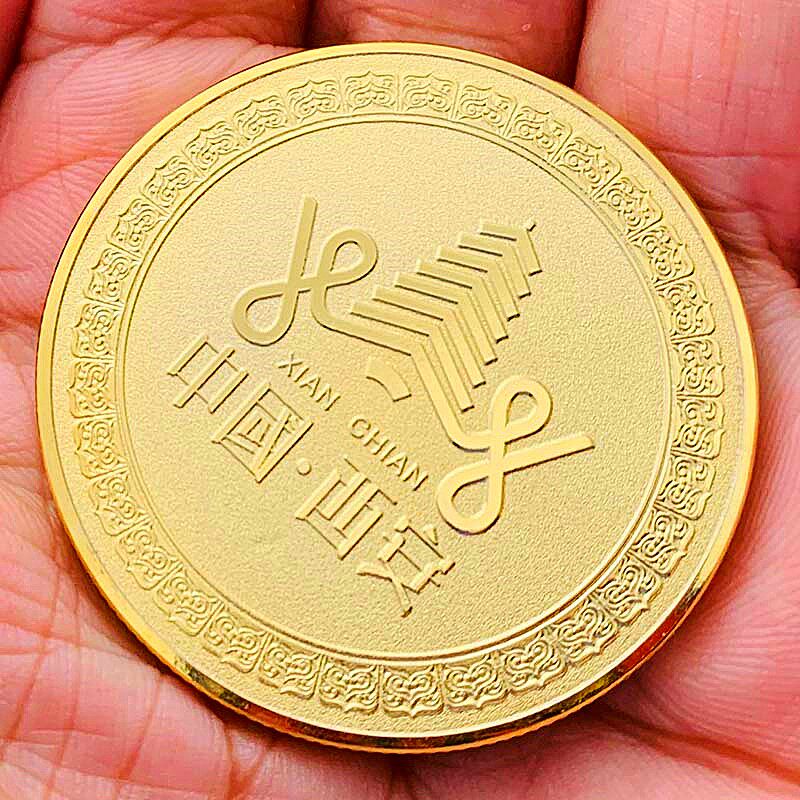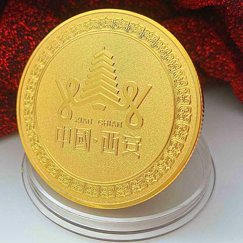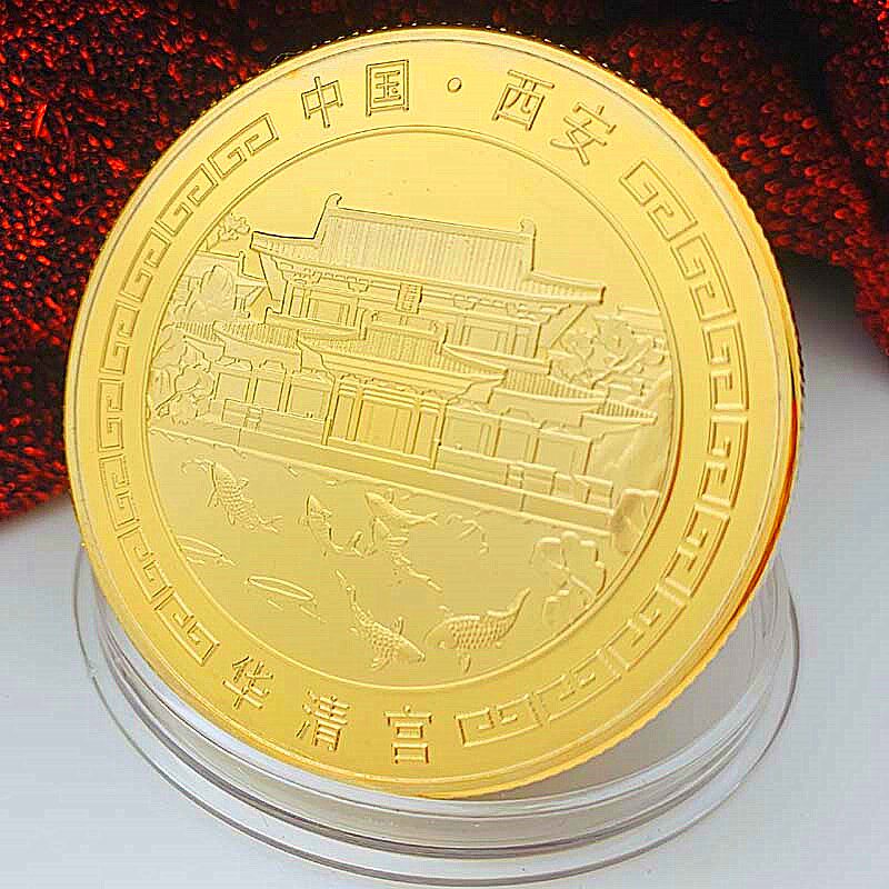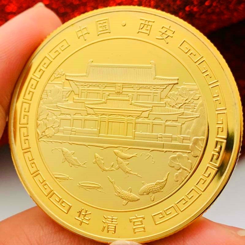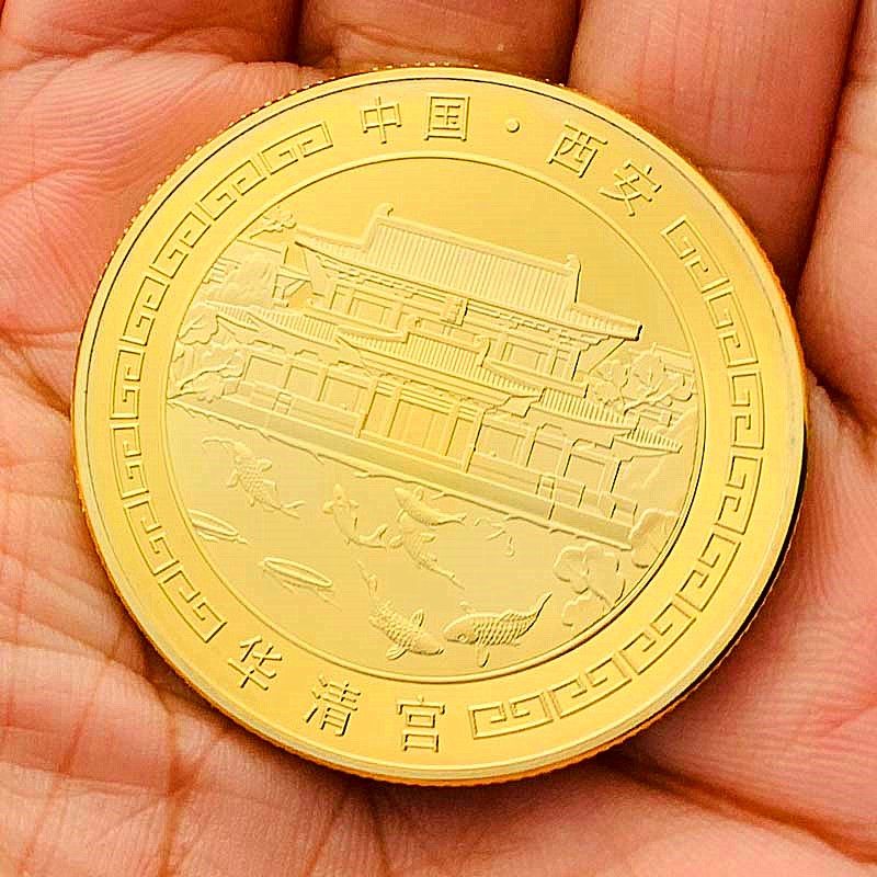 📚 中国旅游景区西安风景华清宫镀金纪念章 把玩挂件钥匙扣金币礼物