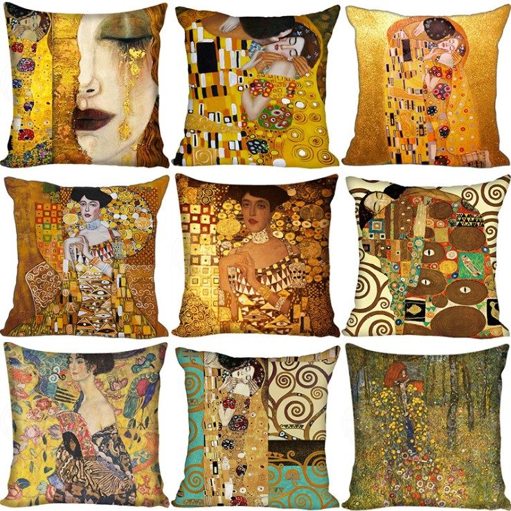 📚 现代简约Gustav Klimt水晶绒抱枕靠垫床头靠背靠枕沙发汽车抱枕套
