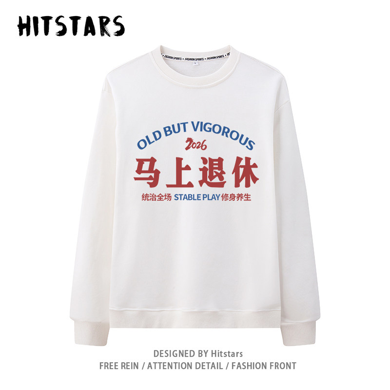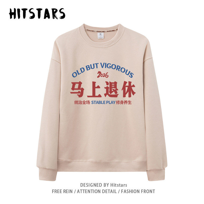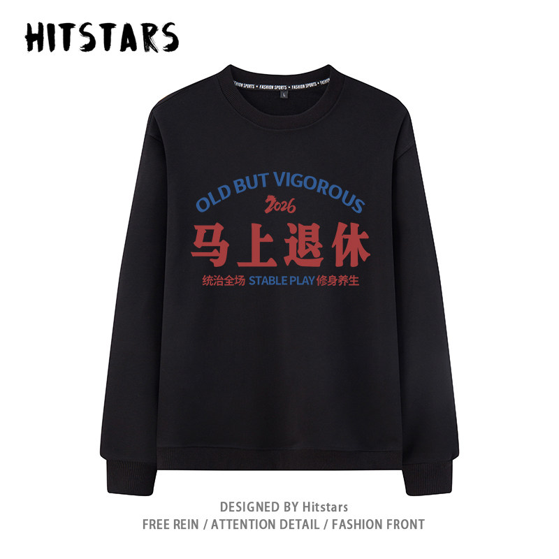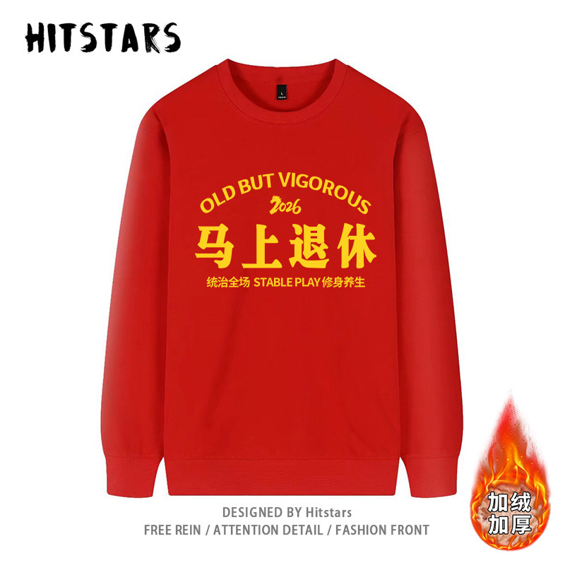 📚 马上退休马年本命年衣服红色卫衣男女早日退休宽松纯棉秋冬加绒