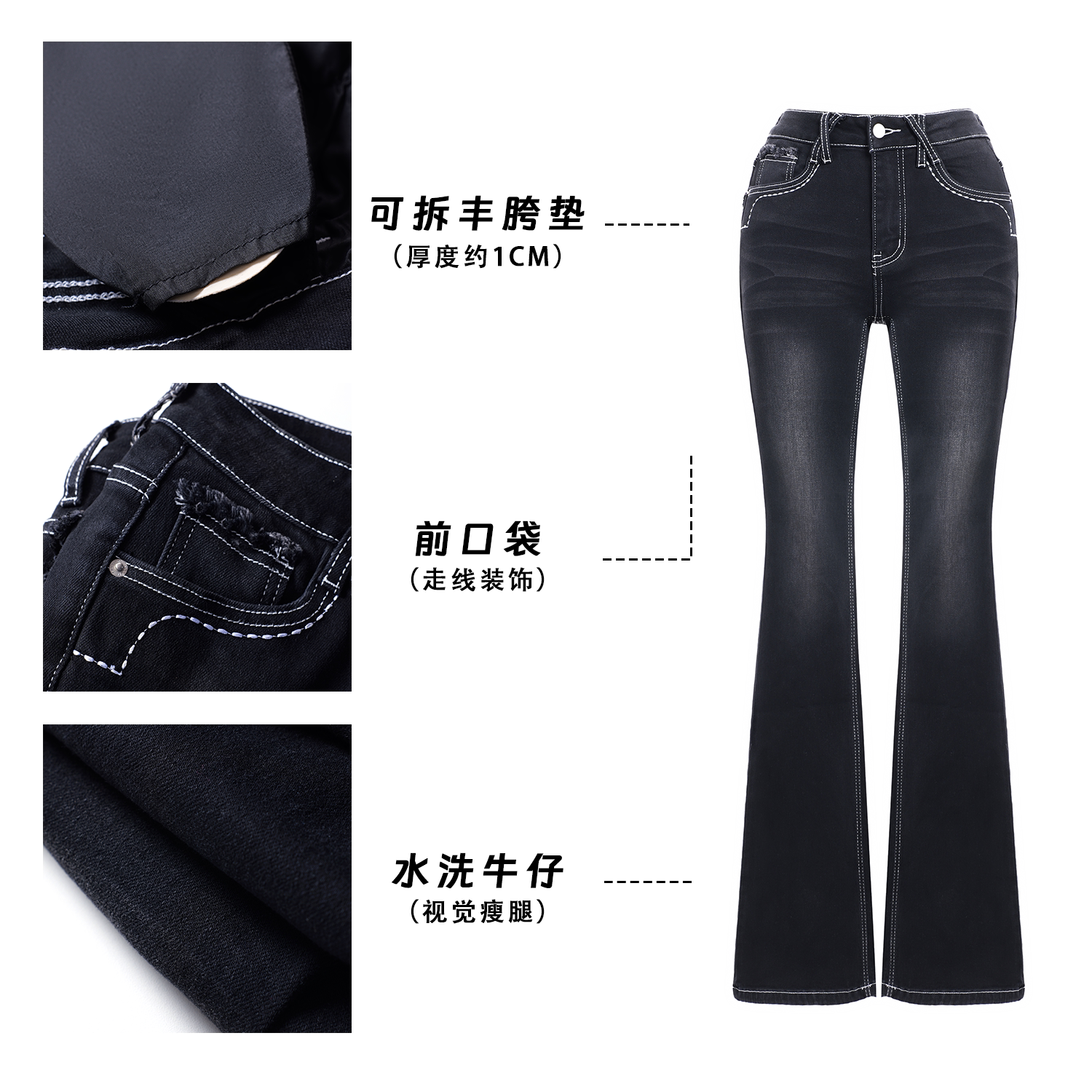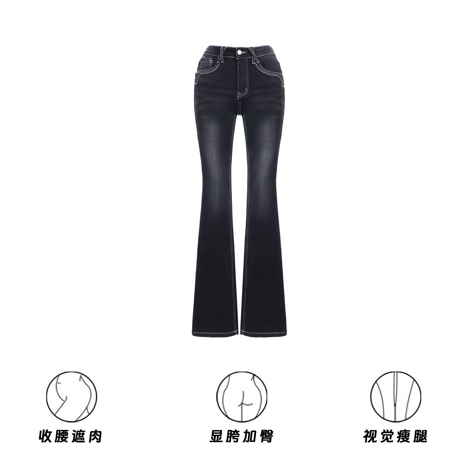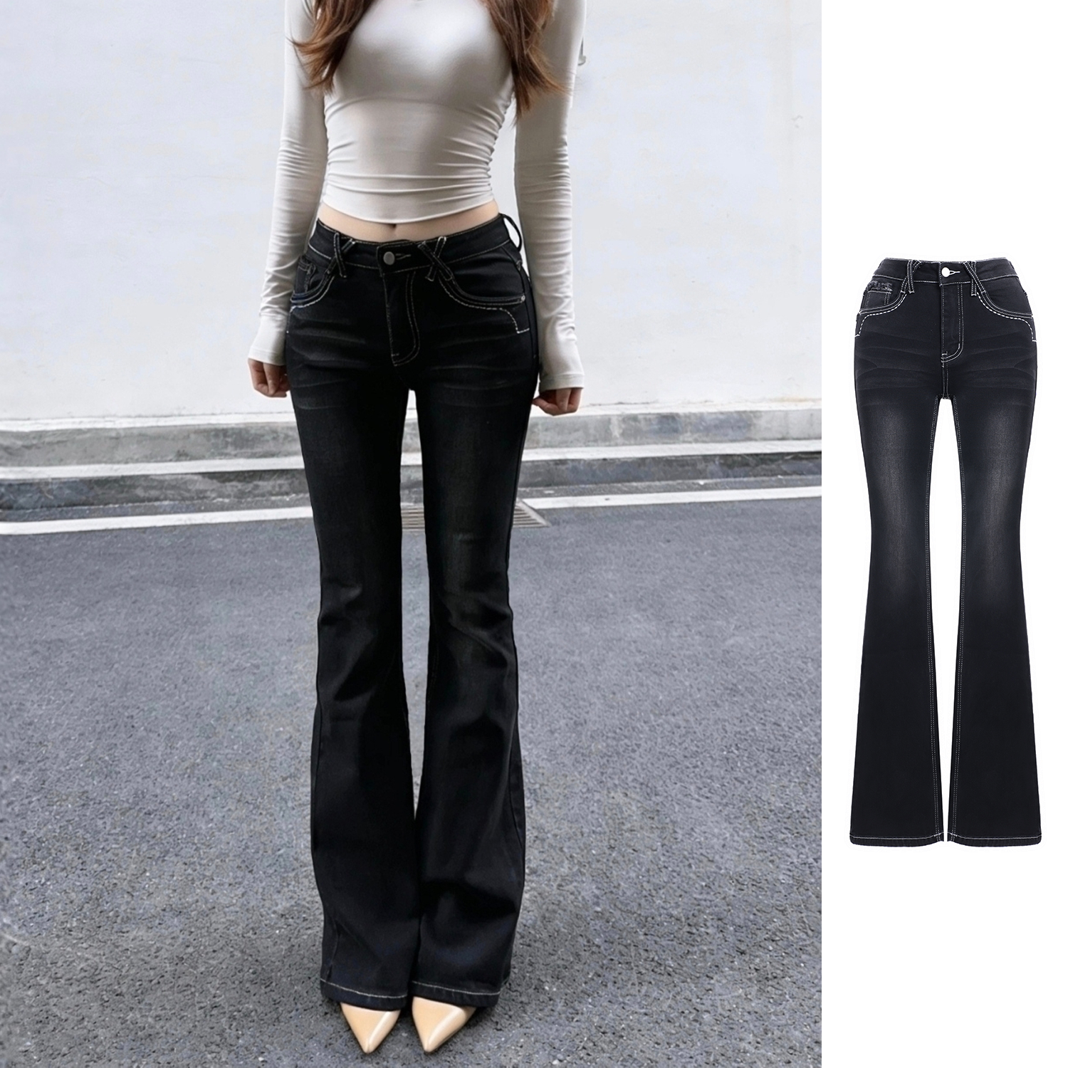 📚 【日常热辣】美式复古水洗修身显瘦中低腰黑色丰胯提臀微喇牛仔裤