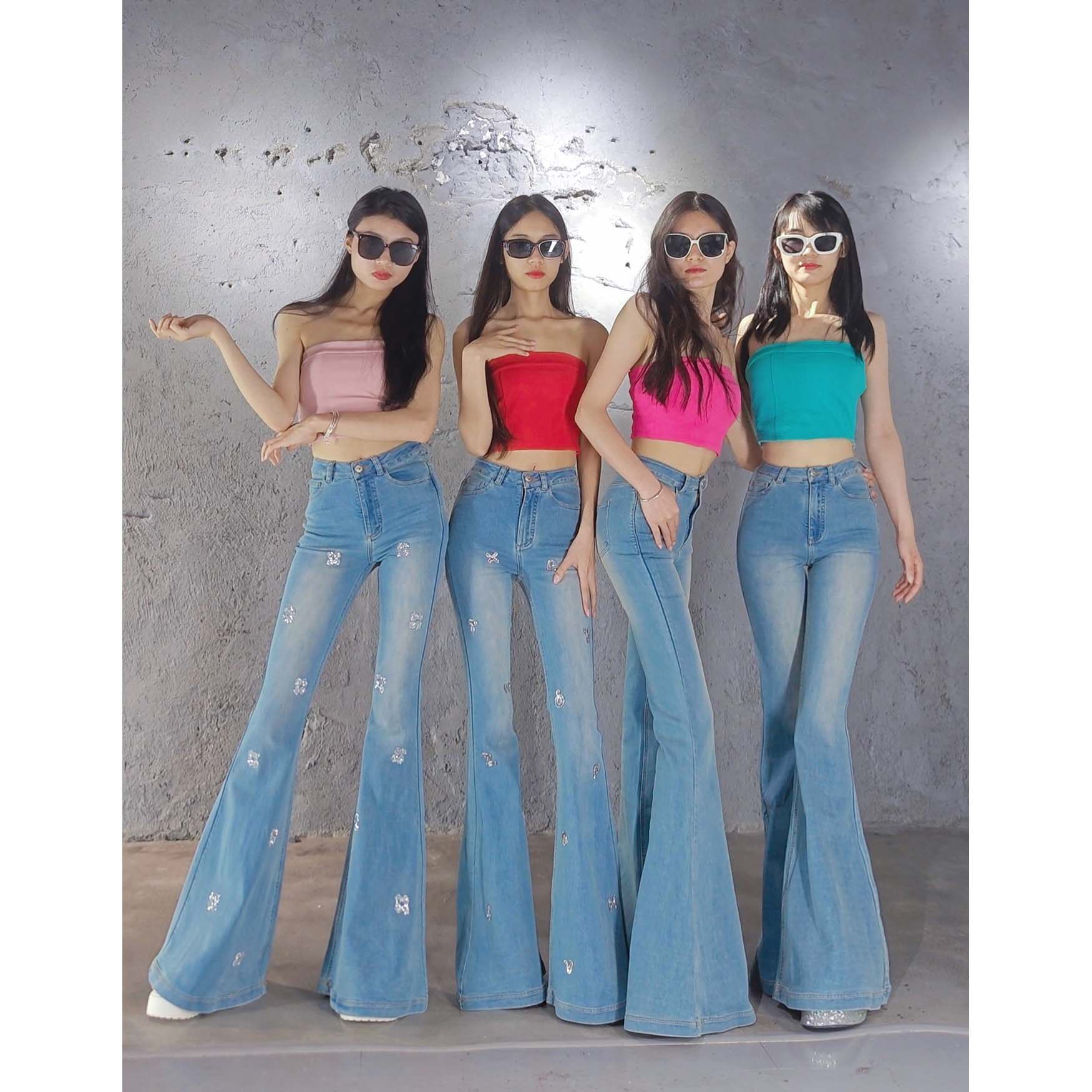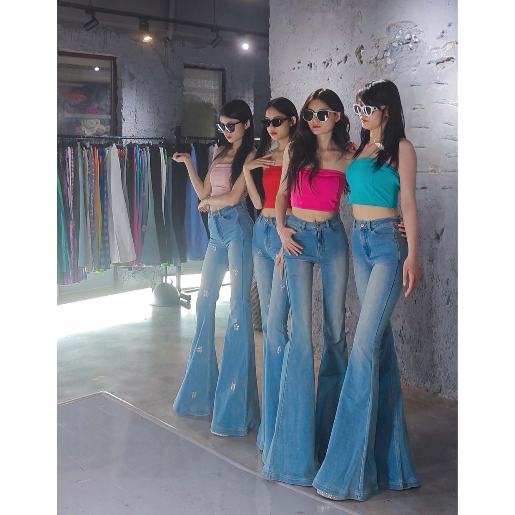 📚 AOAOMISSSHOP鳌鳌家【B入浅蓝牛仔】欧美风拖地喇叭裤长裤