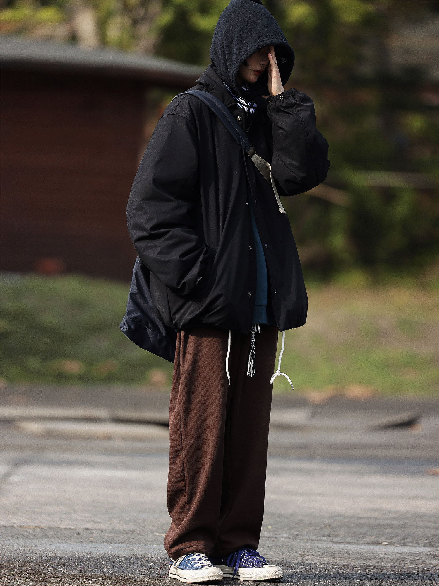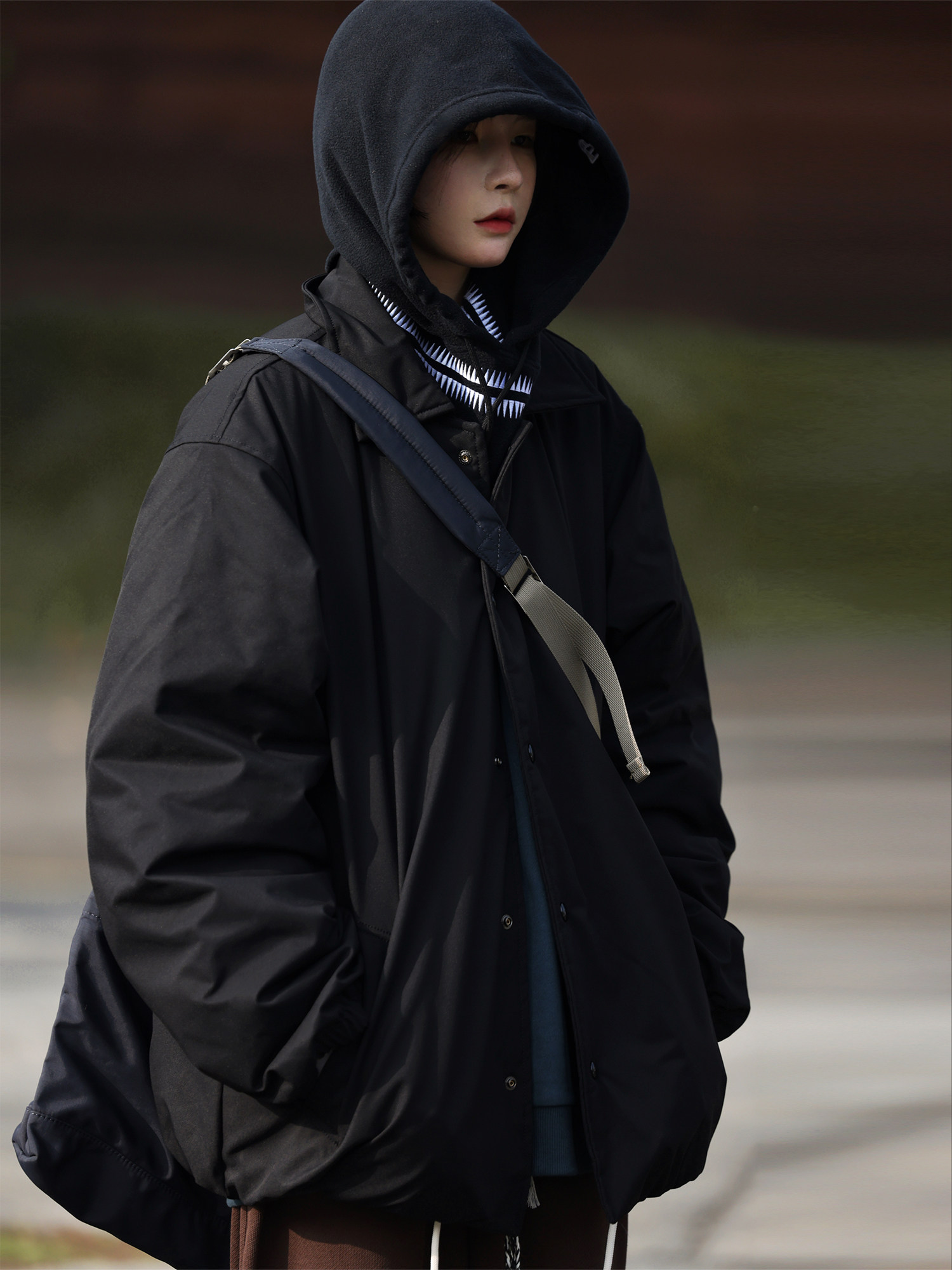 📚 Nobodyknows冬季加厚外套日系翻领复古男女夹棉教练夹克宽松棉衣