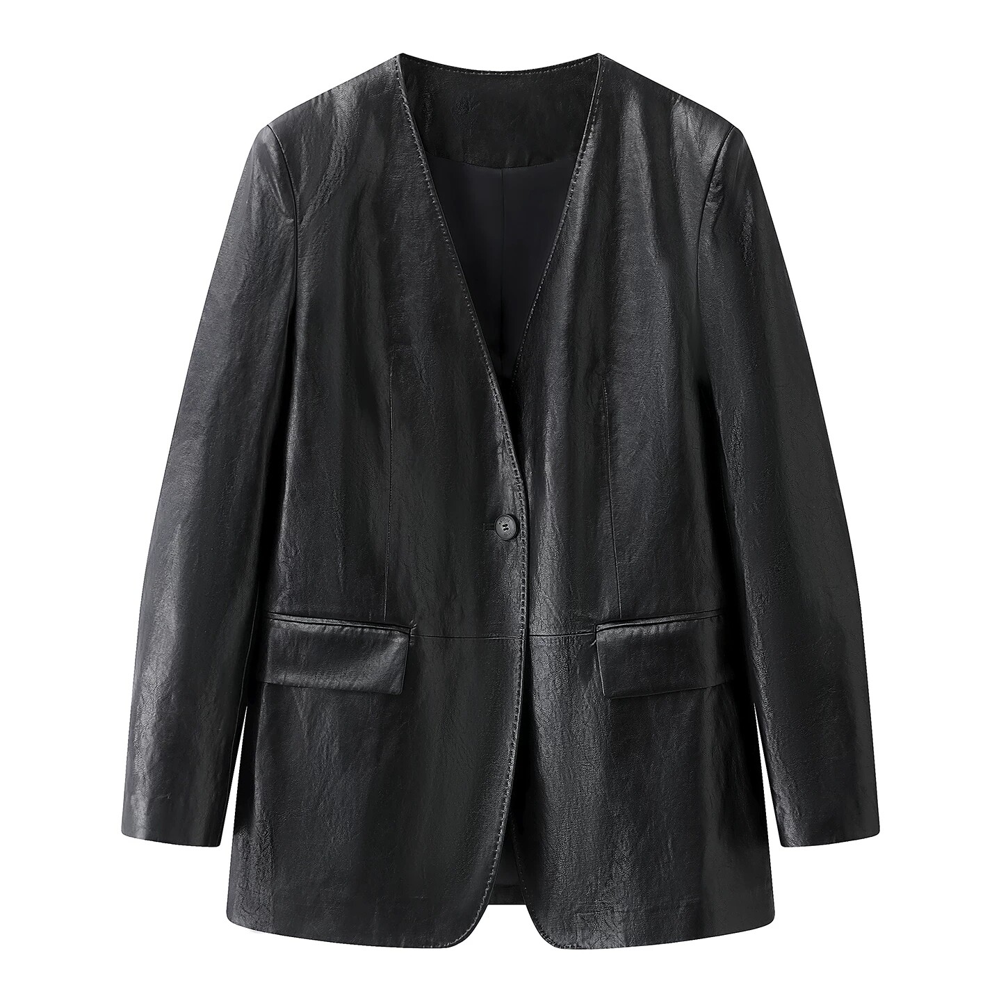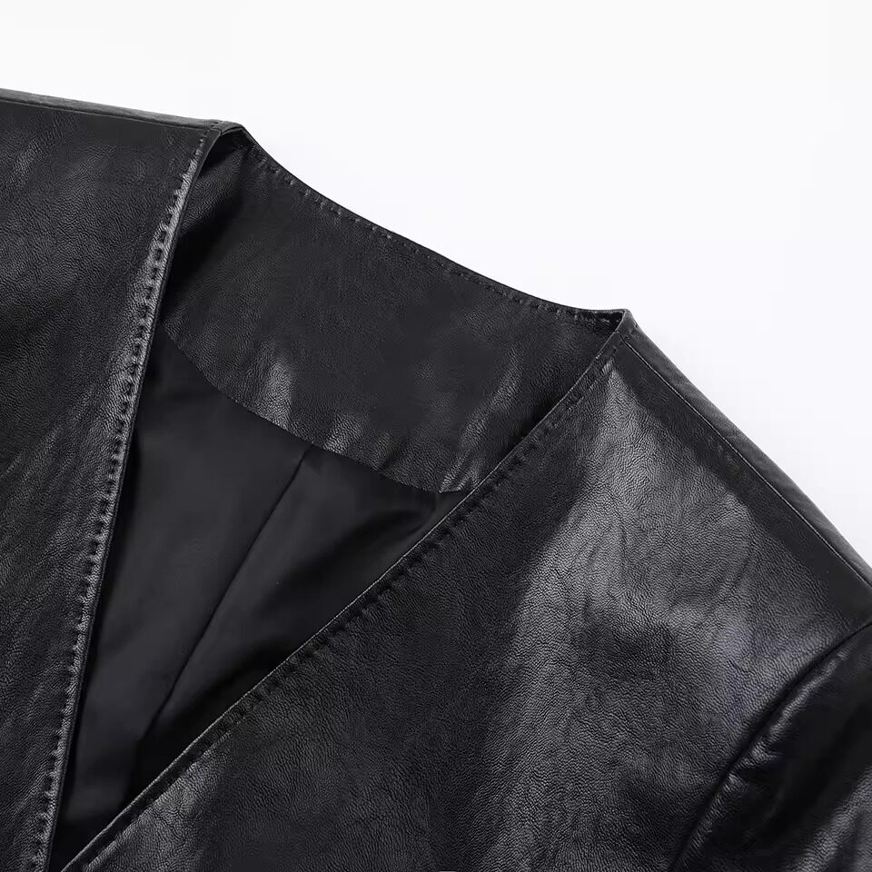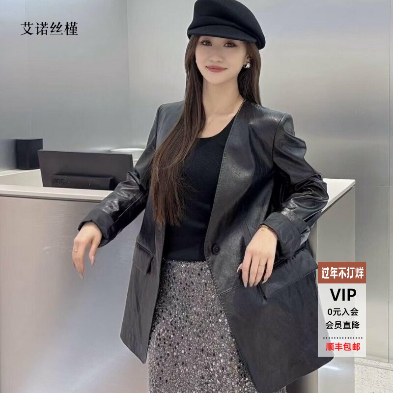 📚 ariosee艾诺丝槿官方旗舰店2026春新款V领中长款皮衣外套BR101183